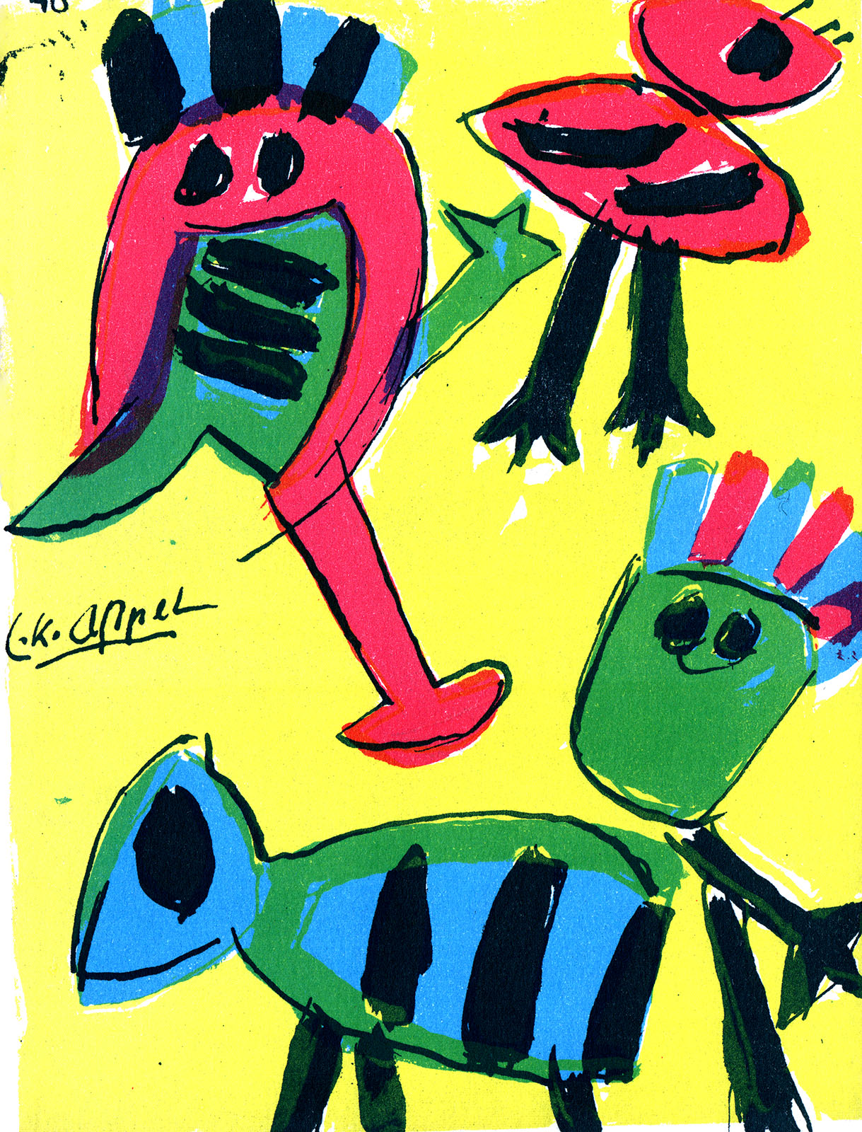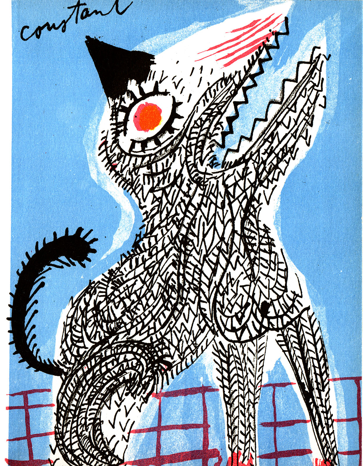 Pierre Alechinsky (text by Luc Zangrie), Else Alfelt (text by Edouard Jaguer), Karel Appel (text by Christian Dotremont), Atlan (text by Michel Ragon), Ejler Bille (text by Michel Ragon), Constant (text by Christian Dotremont), Corneille (text by Christian Dotremont), Jacques Doucet (text by Jean Laude), Sonja Ferlov (text by Christian Dotremont), Stephen Gilbert (text by Edouard Jaguer), Svavar Gudnason (text by Edouard Jaguer), Henry Heerup (text by Christian Dotremont), Egill Jacobsen (text by Christian Dotremont), Asger Jorn (text by Christian Dotremont), and Carl-Henning Pedersen (text by Christian Dotremont).