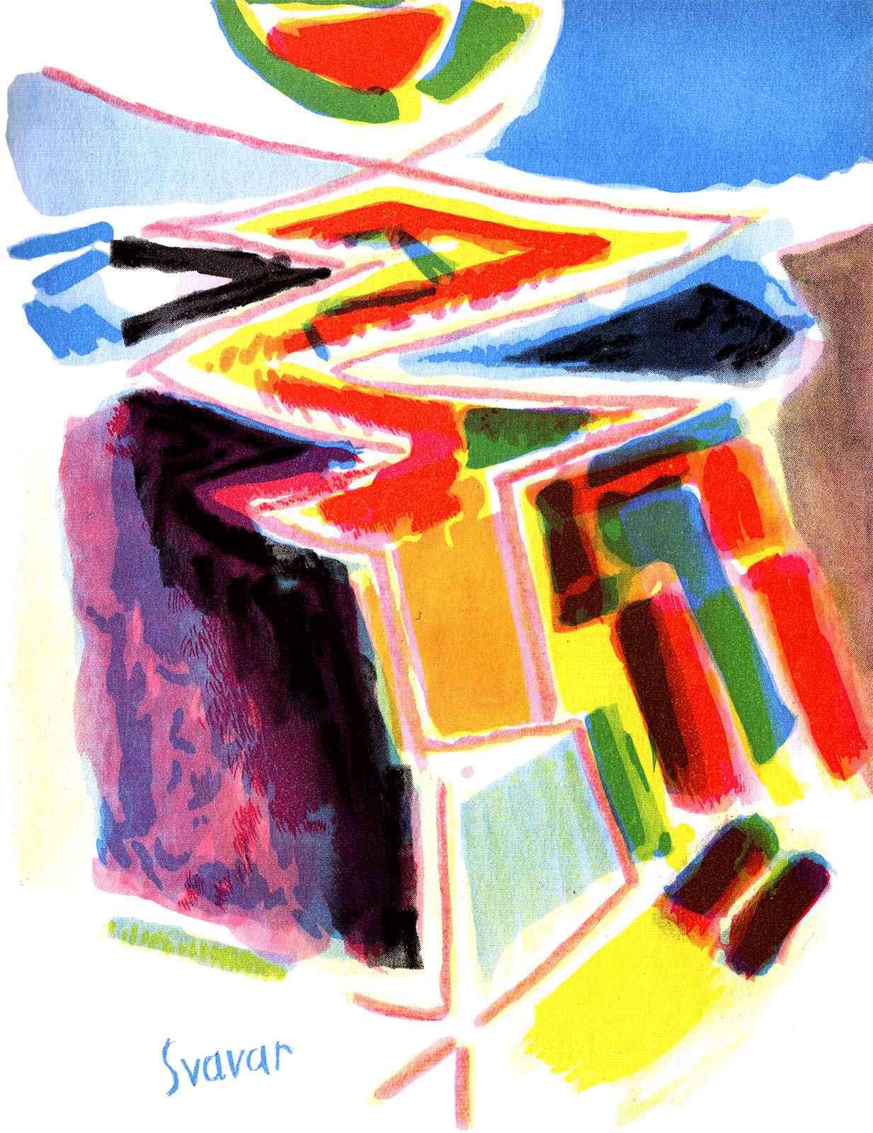 In his introductory statement, Jorn articulated the theoretical foundation for the series and for COBRA’s experimental approach. He expressed hope that artists of other tendencies would adopt the idea of such documentation, thereby helping to break down what he called the unnatural frameworks and sects within which the “isms” had gradually encapsulated contemporary art. The dissolution of artistic frameworks was, for Jorn, the basic program for the tendency represented in the Bibliotek.