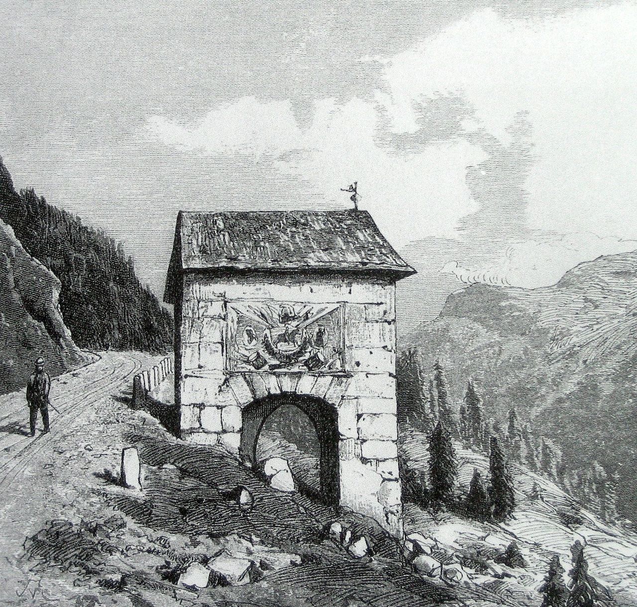 “Chapel Sogn Roc e Sogn Bistgaun, Vella,” Graubünden Tourism, accessed 18 February 2026. The chapel was founded in 1592 by district judge Gallus of Mont during a plague epidemic; Ardüser’s paintings were later supplemented by a new facade by Alois Carigiet in 1940. ↩