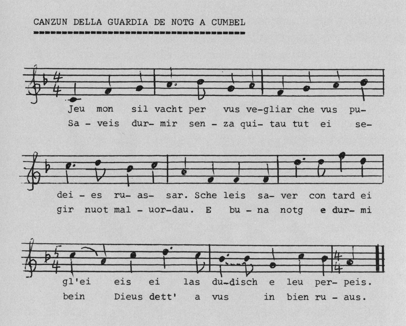 660 The text of the song is from Alfons Maissen/A. Schorta, Die Lieder der Consolaziun . . . Part II, 1945, p. 152 f.
