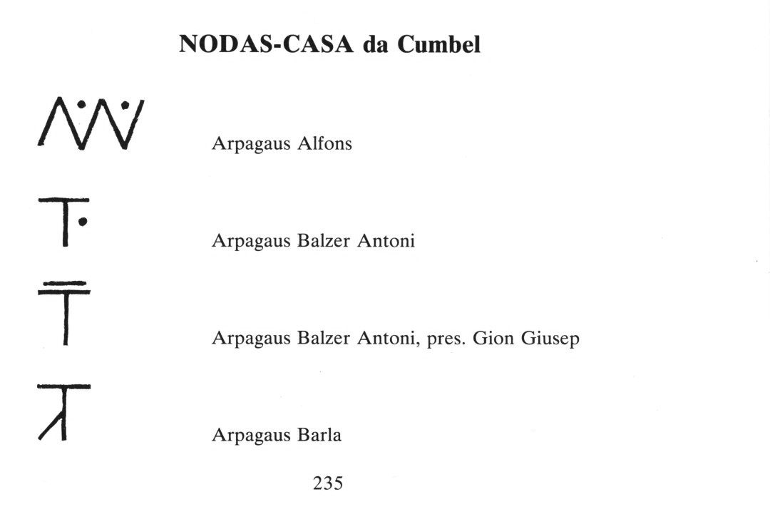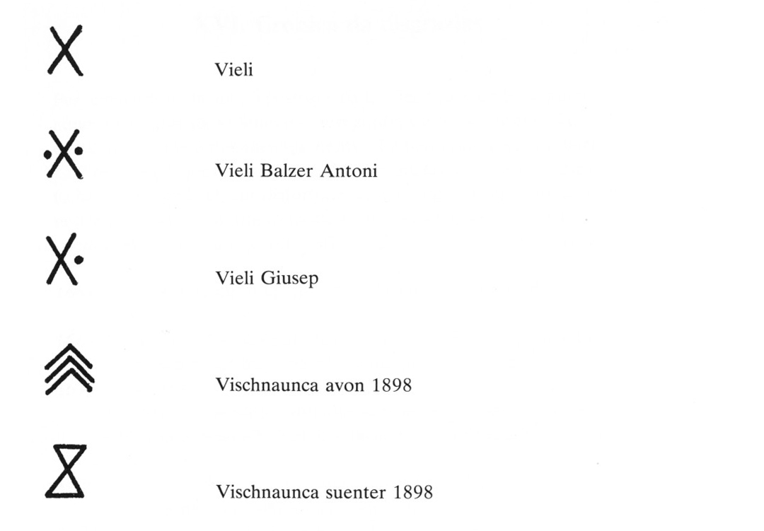 599 Arnold Büchli, Mythologische Landeskunde von Graubünden, vol. 2, 1966, p. 426, 439. — Il Glogn, year 21, 1947, p. 135. — ApC, Cronica Baselgia, p. 81.