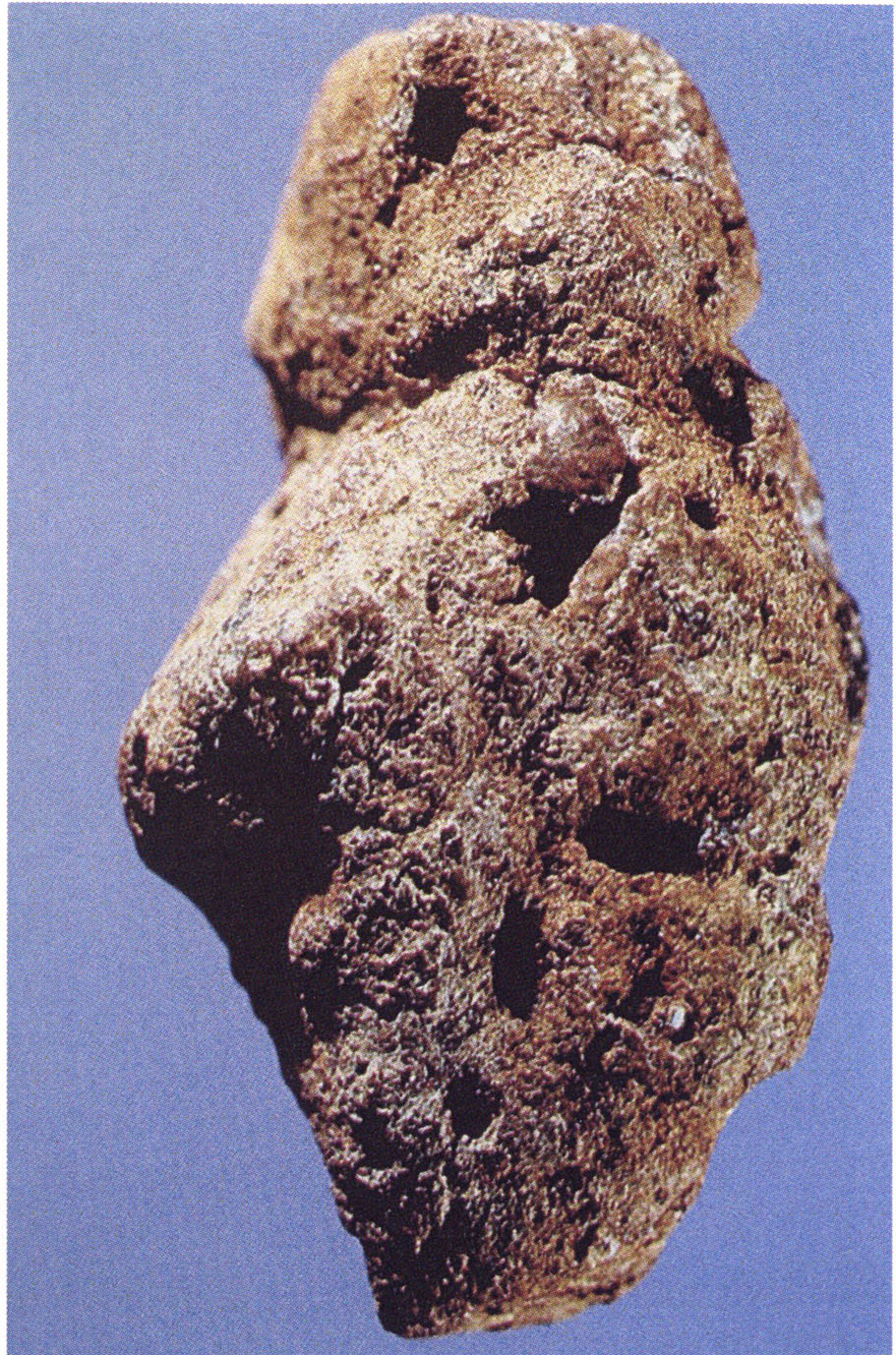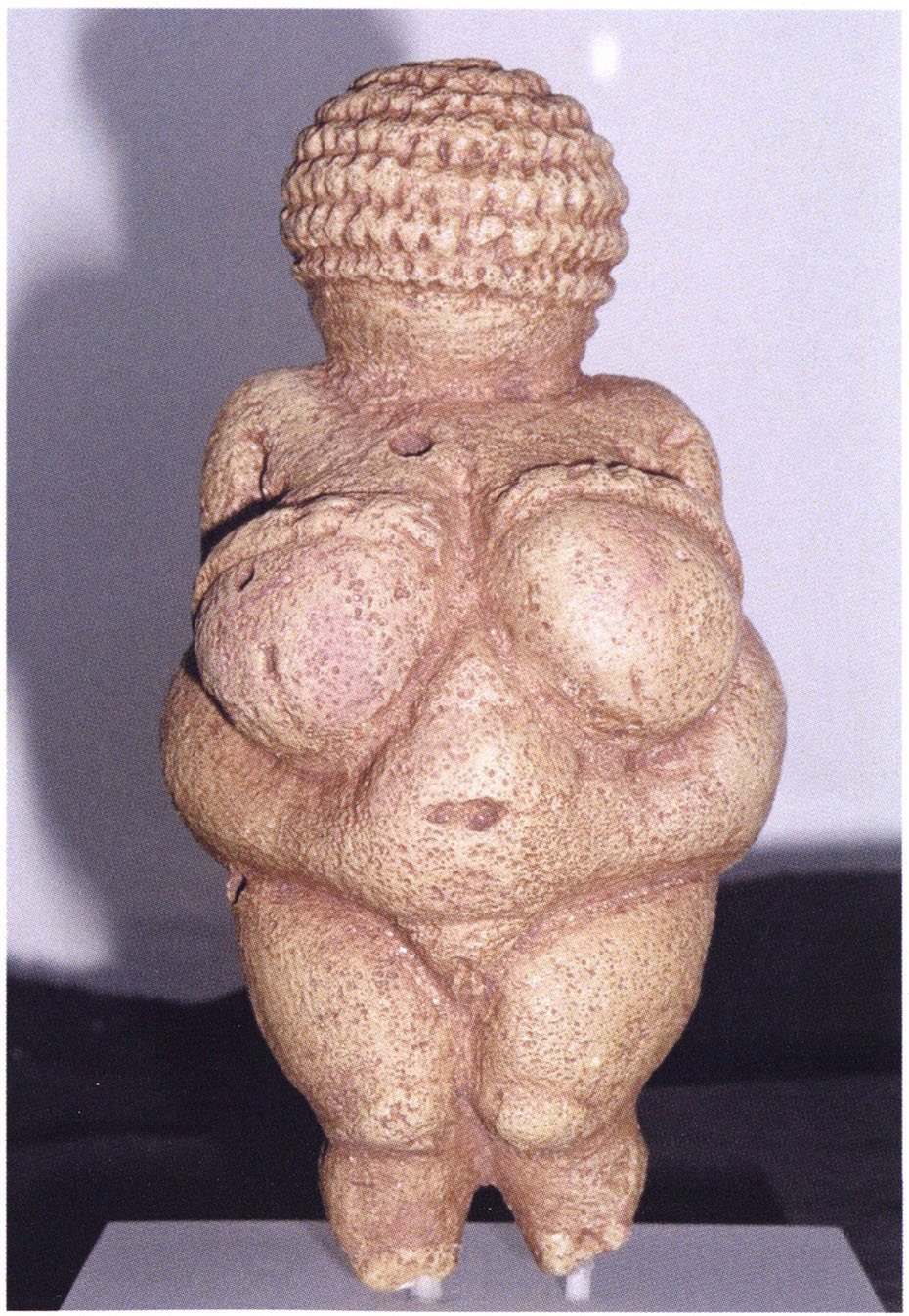 Eine Untersuchung dieses Figürchens von Alexander Marshack unter dem Elekronenmikroskop (vgl. Antiquity, 1997, 71, 327-337) ergab Bearbeitungsspuren und untermauert damit den allein mit dem Auge schon gut erkennbaren, künstlichen, vom Menschen gestalteten, figürlichen Charakter des Steines mit Darstellung von Kopf, angelegten und angewinkelten Armen und weiblicher Brust, bzw. angeschwelltem, schwangerem Bauch (Die Kleinheit des Figürchen verunmöglicht eine Unterscheidung der beiden Körperpartien !) – siehe Abb. 3, S. 17. In diesem Figürchen hat der Hersteller nicht eine (lebende) Frau nachgebildet, sondern seinen praktizieriten Ritus zur Wiederherstellung des getöteten Tieres symbolisch-figürlich dargestellt. Dieses Figürchen bildet zur Zeit den frühst datierten Beleg einer in einer Jahrzehntausende alten Tradition stehenden Reihe von symbolischen Darstellungen der weiblichen, gebärenden Fruchtbarkeit, deren berühmteste Vertreterin die viel später entstandene (26’000 BP) “Venus von Willendorf” ist - Abb. 4, S. 17 ! - Die Tradition der symbolisch-bildhaften weiblichen Fruchtbarkeitsdarstellungen hatte die gesamte vorchristliche Zeit überdauert und ging noch weit über die Steinzeit hinaus !