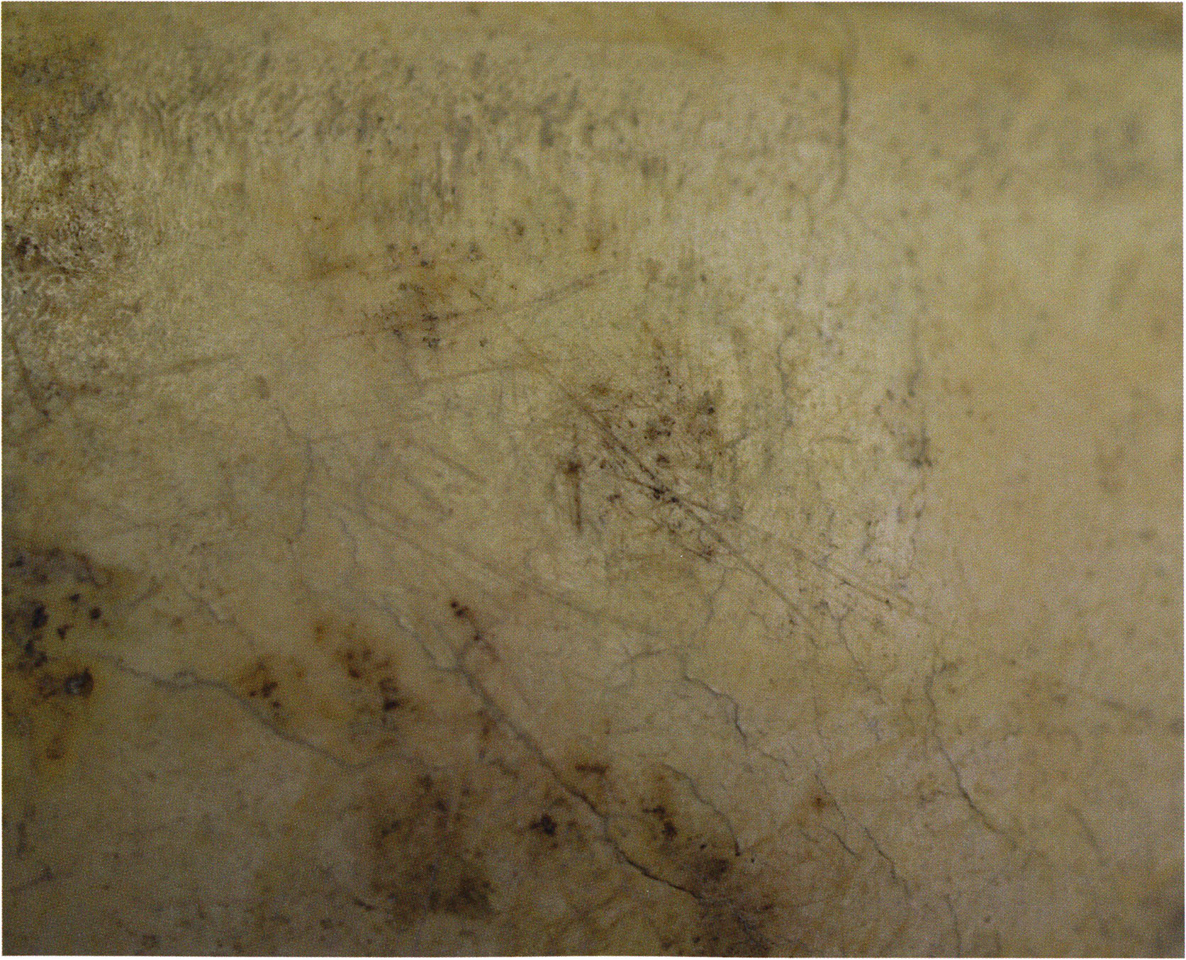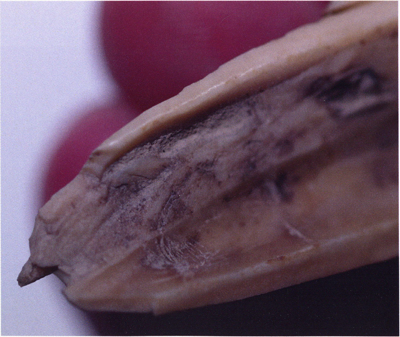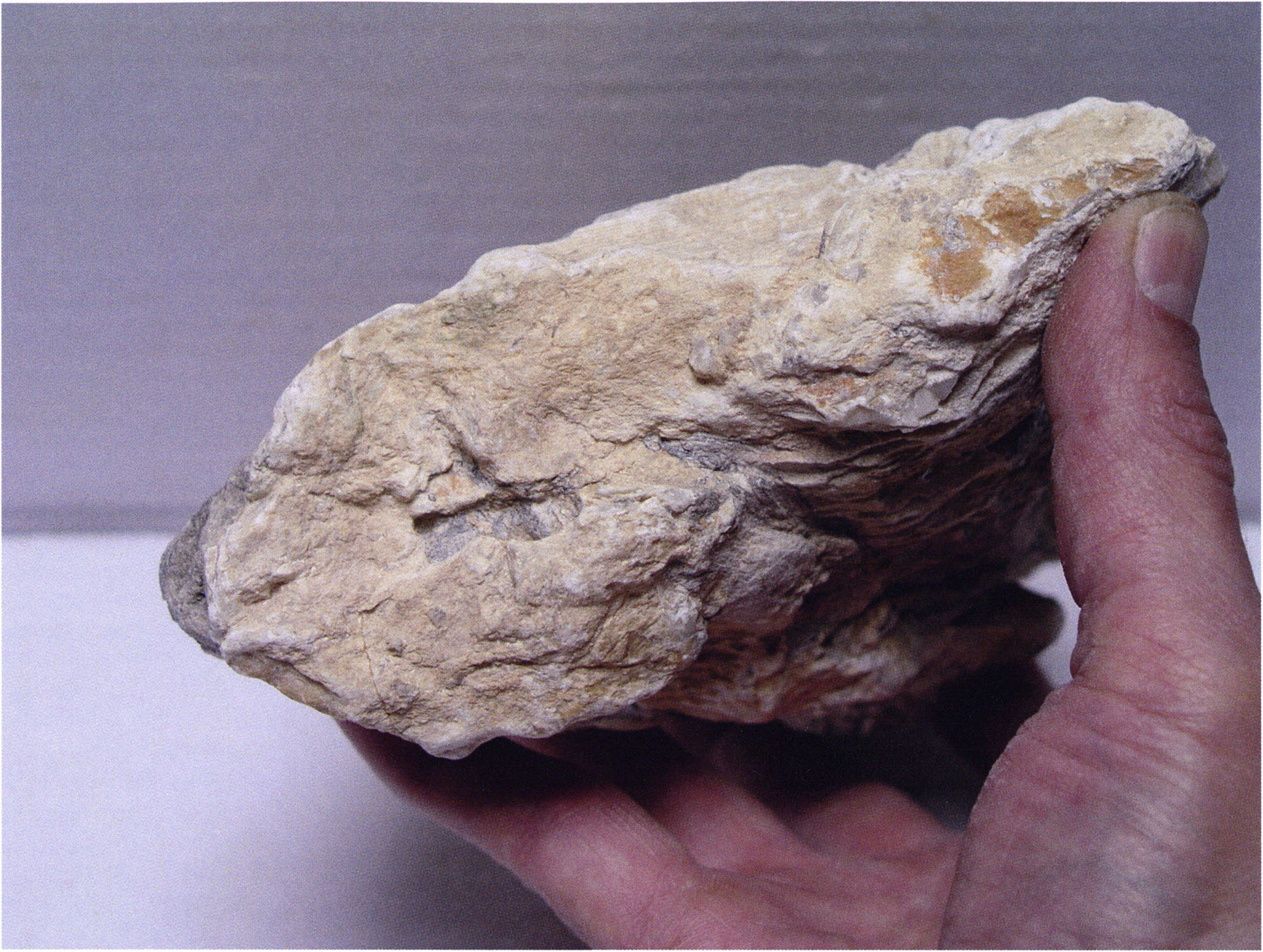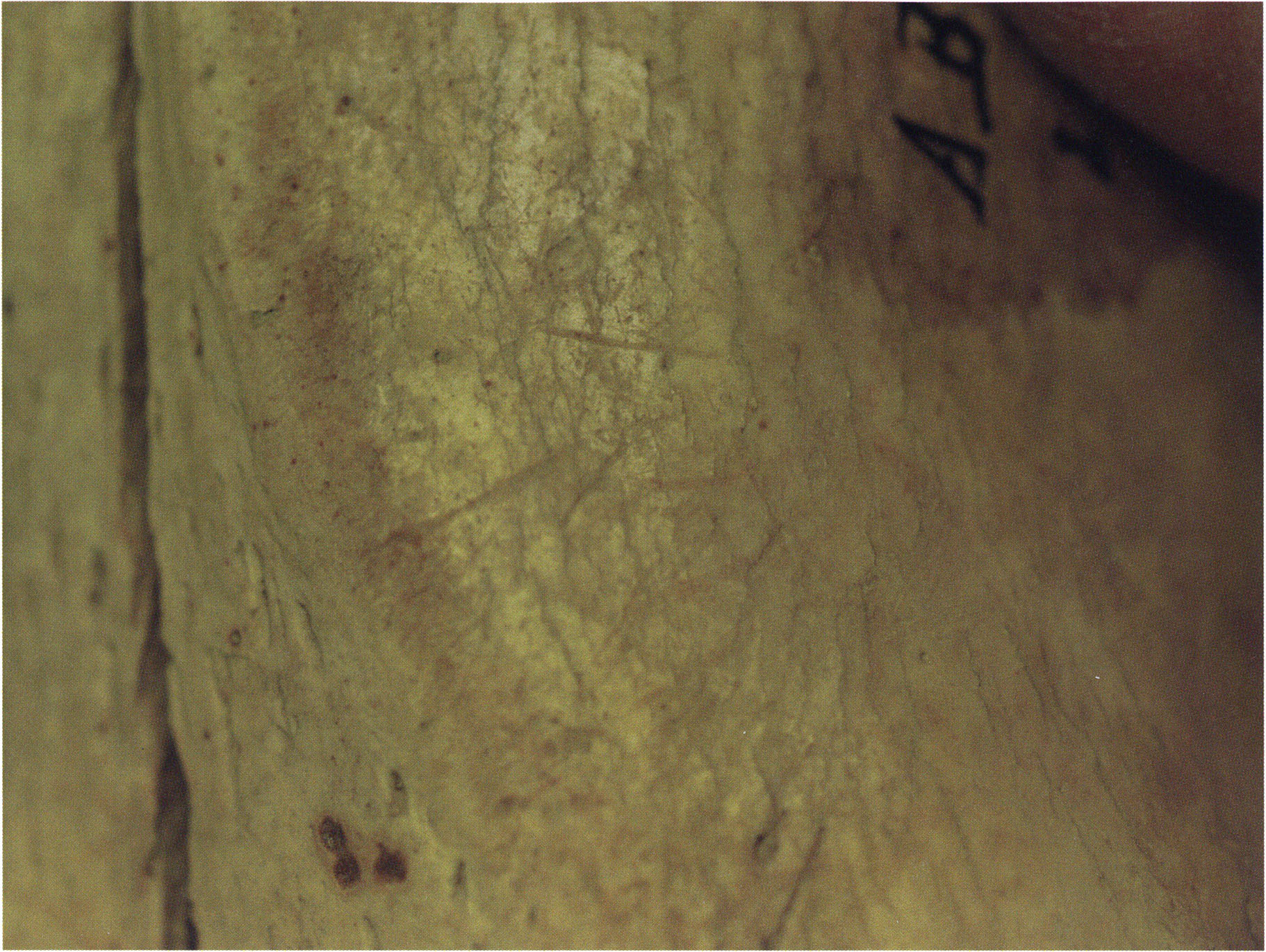 Steinskulpturen, wie hier eine vorzuliegen scheint, verlieren aber durch ihre Jahrtausende und Jahrzehntausende währende Einlagerung im Boden ihre einstmals vorhandenen, scharf kantigen Bearbeitungsspuren der Bildhauerarbeit und weisen an allen diesen Arbeitsstellen, insbesondere auch an den Rändern, eine abgeschliffene, gerundete Oberfläche auf. Die Natur wird gleichsam zur zweiten Bildhauerin und verleiht dem Kunstwerk eine Patina, die zu geben sie allein vermag ! An einem solchen Objekt nachzuweisen, dass es von Hand des Menschen stammt und kein rein zufälliges Produkt der Natur ist, ist nicht immer mehr möglich. Glücklicherweise lässt sich aber bei unserer Gebärenden vom Drachenloch an der Basis eine eindeutige Bearbeitungsstelle noch nachweisen: Von blossem Auge gut erkennbar hat der Bildhauer dort einen rechteckigen, rund 20 x 5 mm grossen Schlitz – wahrscheinlich die symbolische Darstellung des weiblichen Schosses - aus der hellen Seewerkalkoberflläche herausgemeisselt – Abb. 17 d, S. 26. Von dieser eindeutigen Bearbeitungsspur abgesehen machen aber allein schon die regelmässige, geometrische Form des Objektes und die modellierte Hinterkopfsilhouette mit der anschliessenden abgewinkelten, geraden Rückenlinie diesen Stein zu einer Figur, aus der unzweifelhaft der kreativ gestaltende Geist des Menschen spricht (und keine Hand des natürlichen Zufalls).