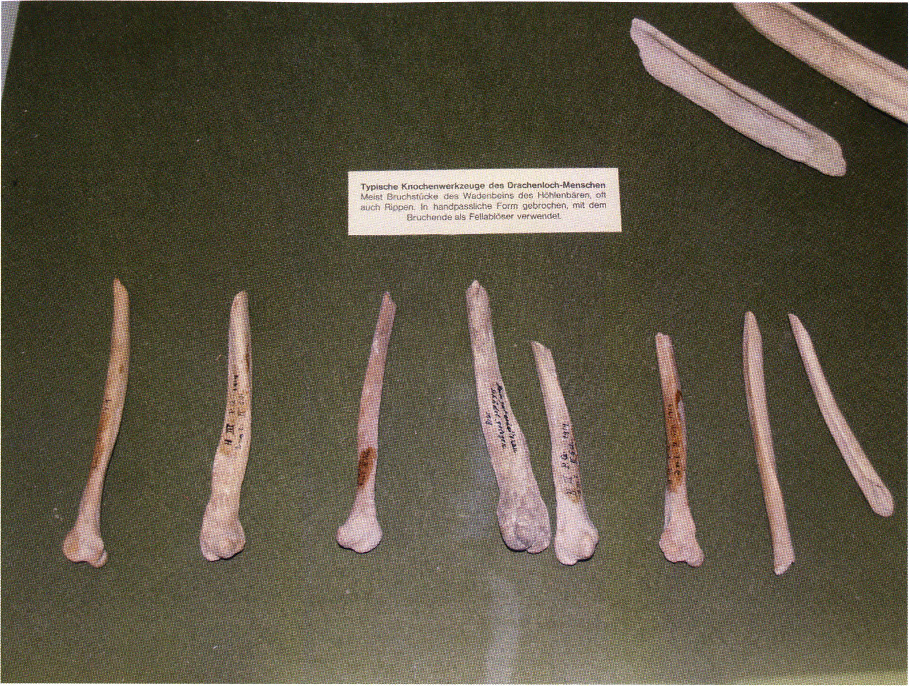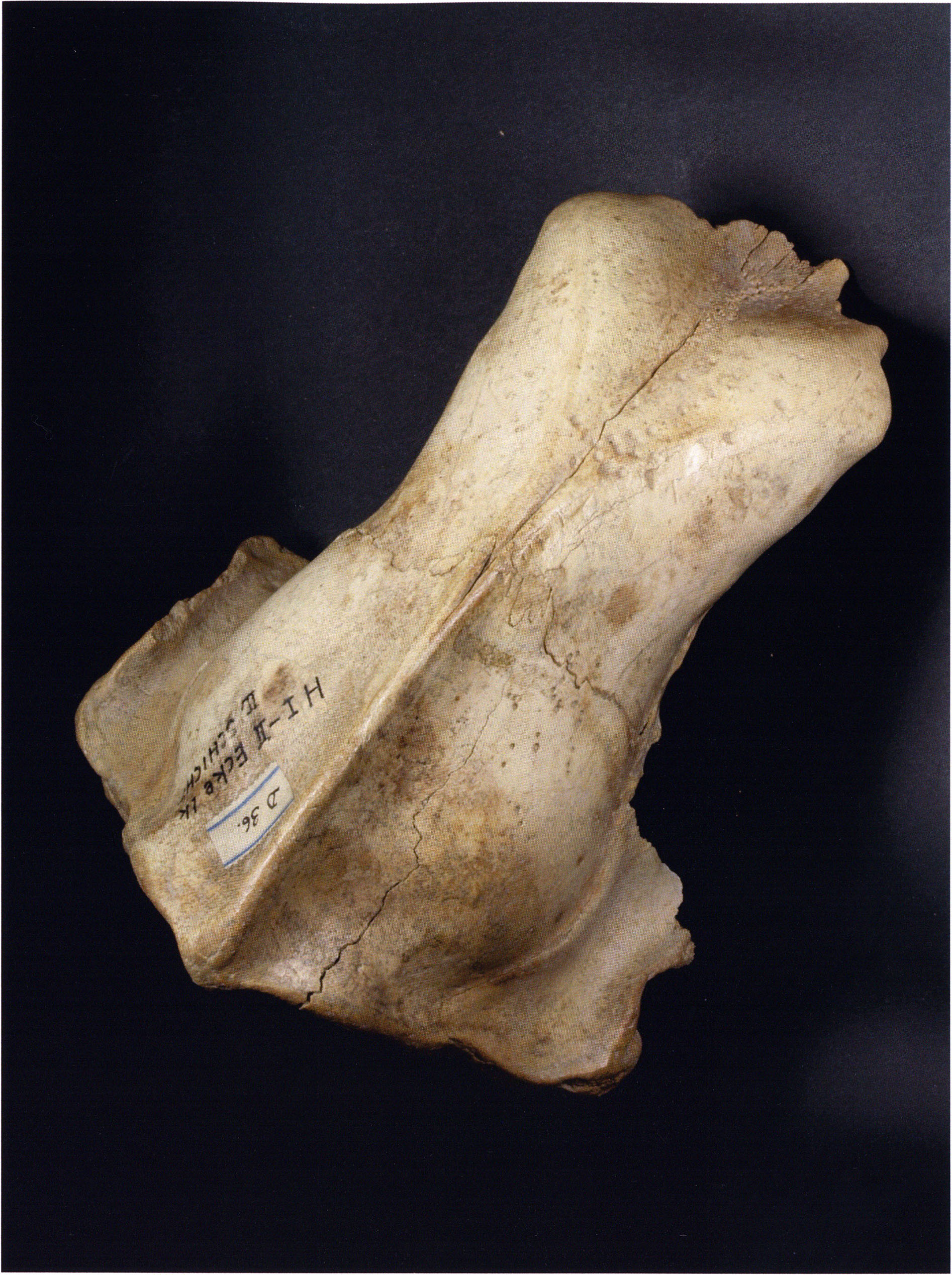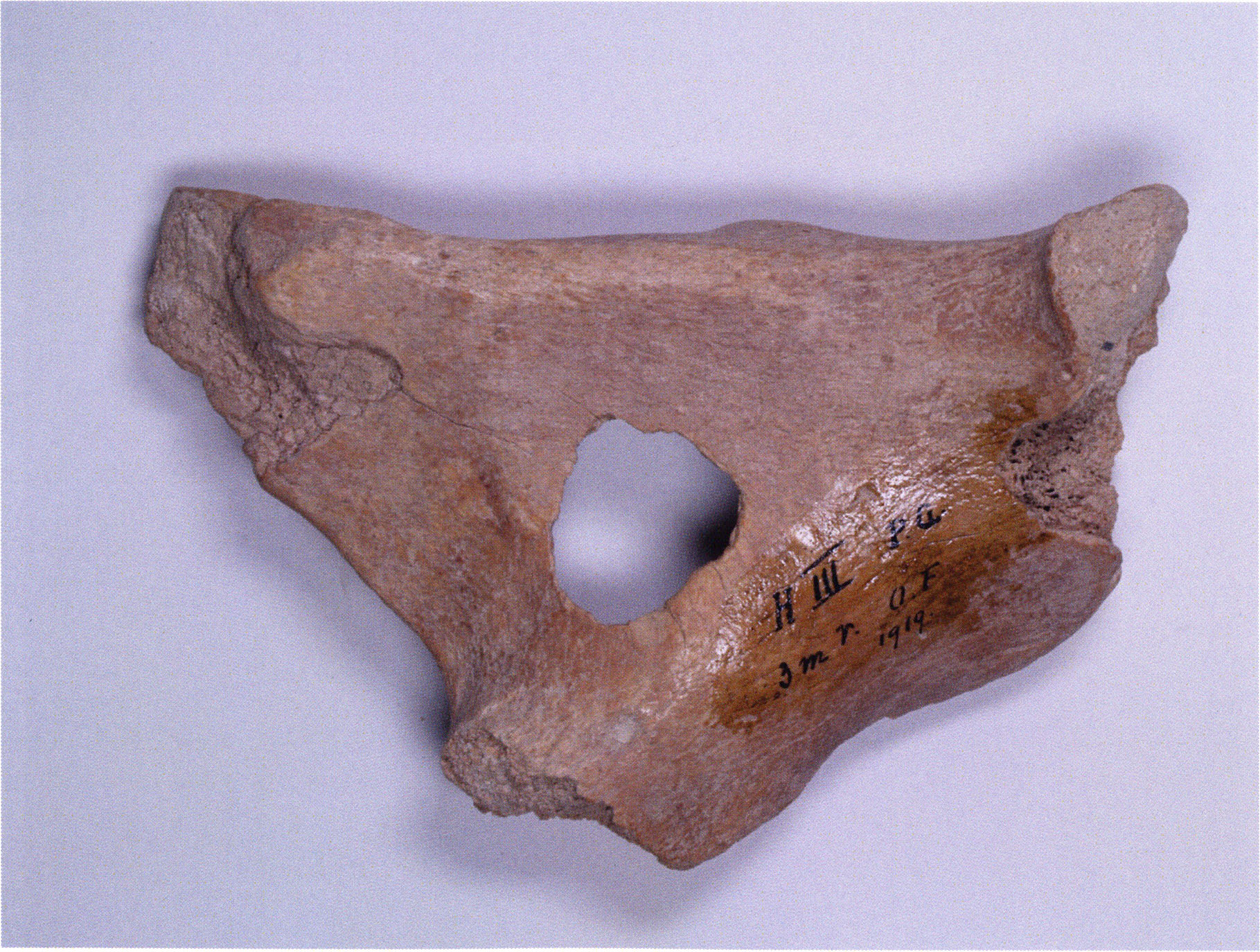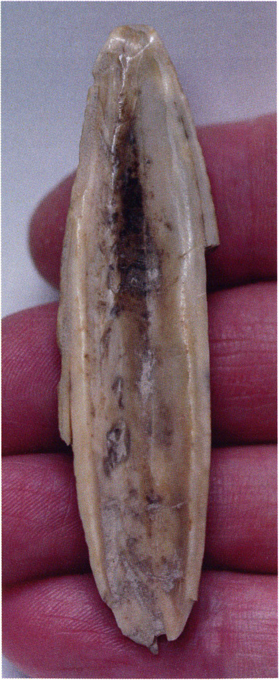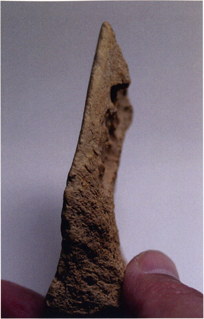 Two reasons presumably prompted Nigg's striking formulation "curious bone fragment" and his uncertainty "ibex?": The bone fragment could not be readily assigned — by its form and size — to the species practically exclusively represented in the Drachenloch, "Ursus spelaeus" (= cave bear), and moreover it was "perforated." Nigg wrote "perforated" and not "it had a hole" because he immediately thought of the activity of man! —