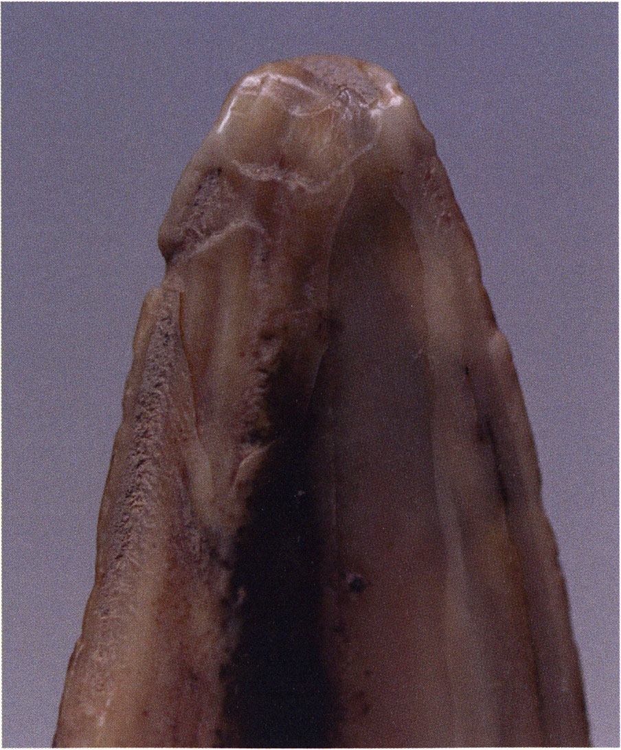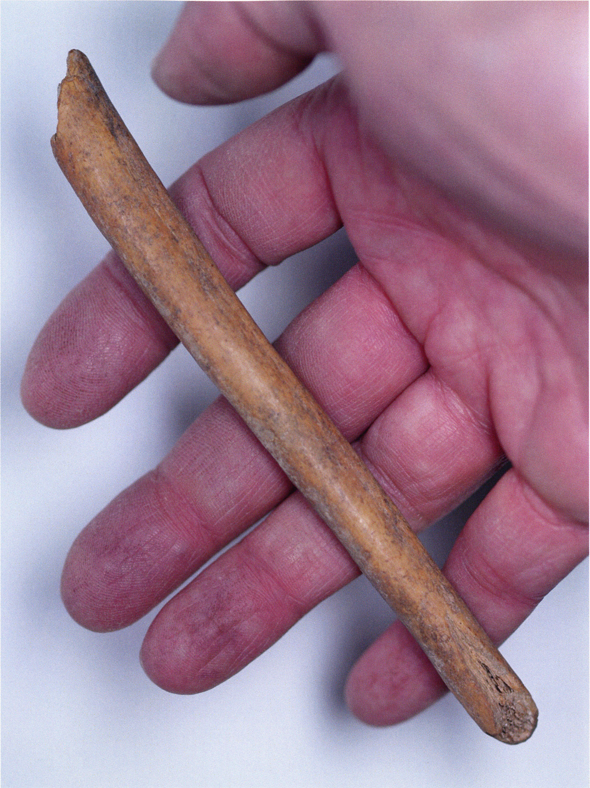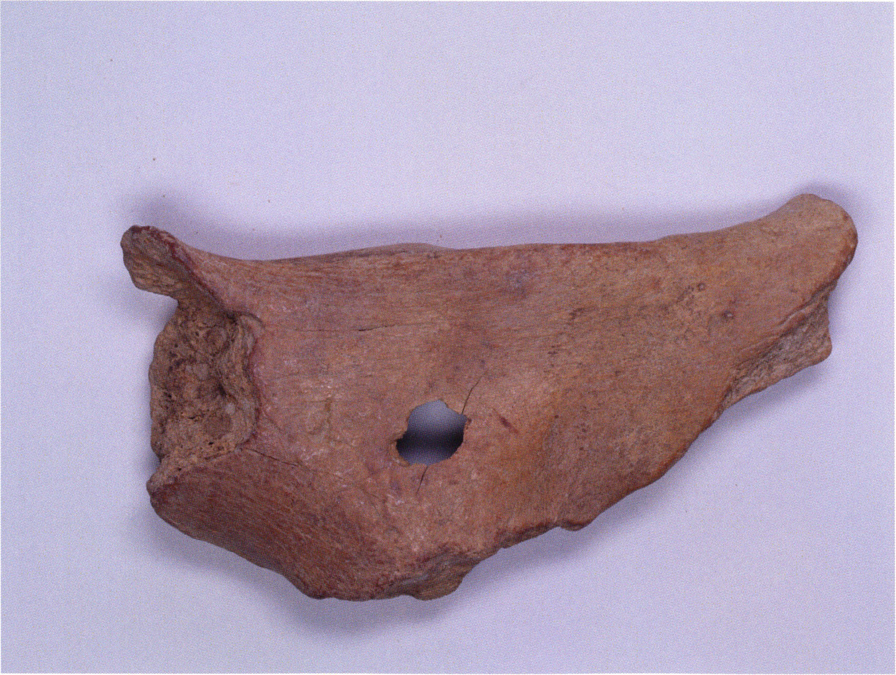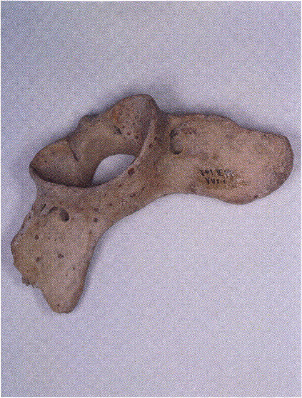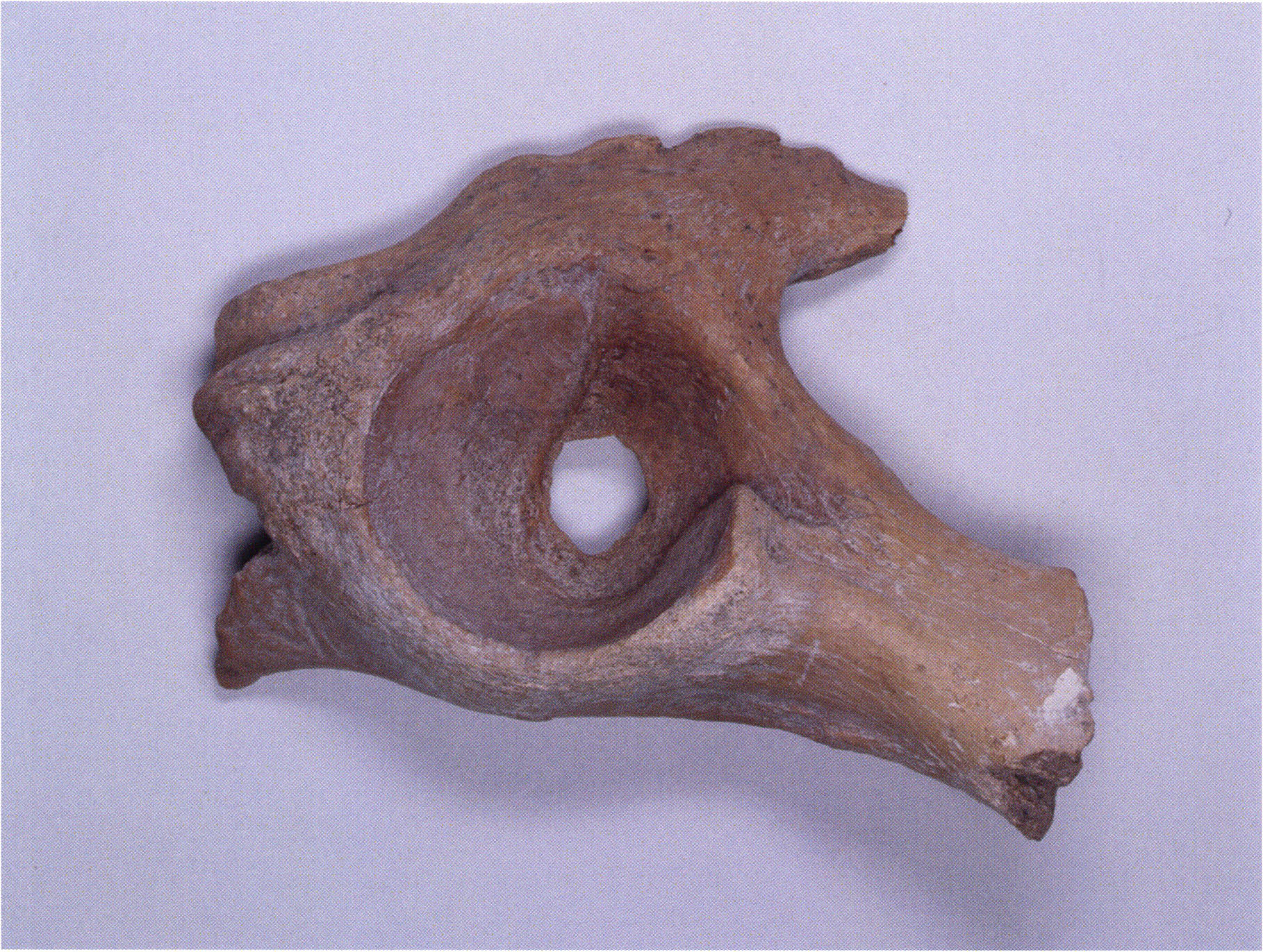 Two reasons presumably prompted Nigg's striking formulation "curious bone fragment" and his uncertainty "ibex?": The bone fragment could not be readily assigned — by its form and size — to the species practically exclusively represented in the Drachenloch, "Ursus spelaeus" (= cave bear), and moreover it was "perforated." Nigg wrote "perforated" and not "it had a hole" because he immediately thought of the activity of man! —