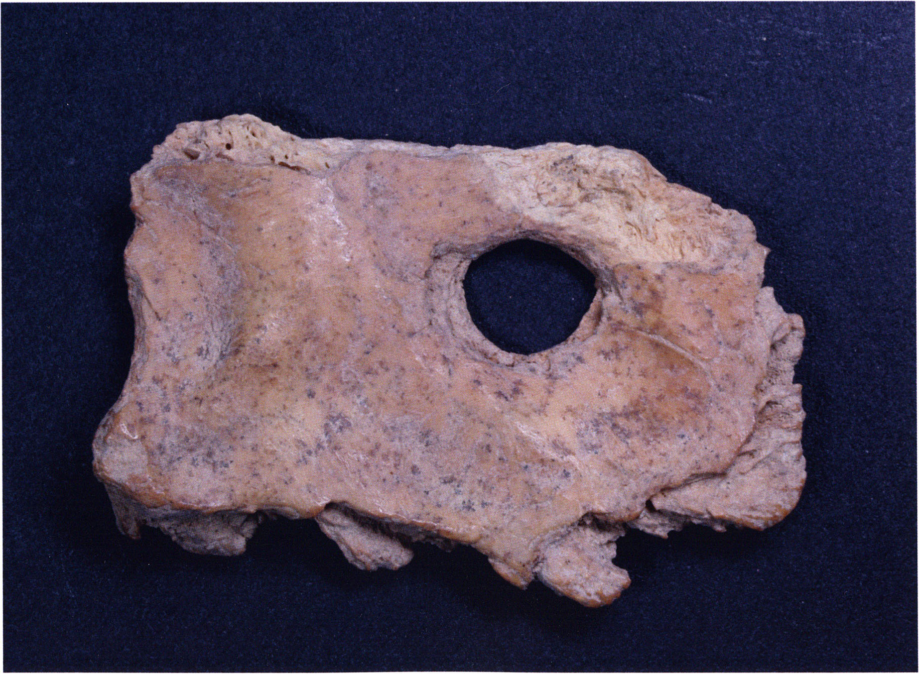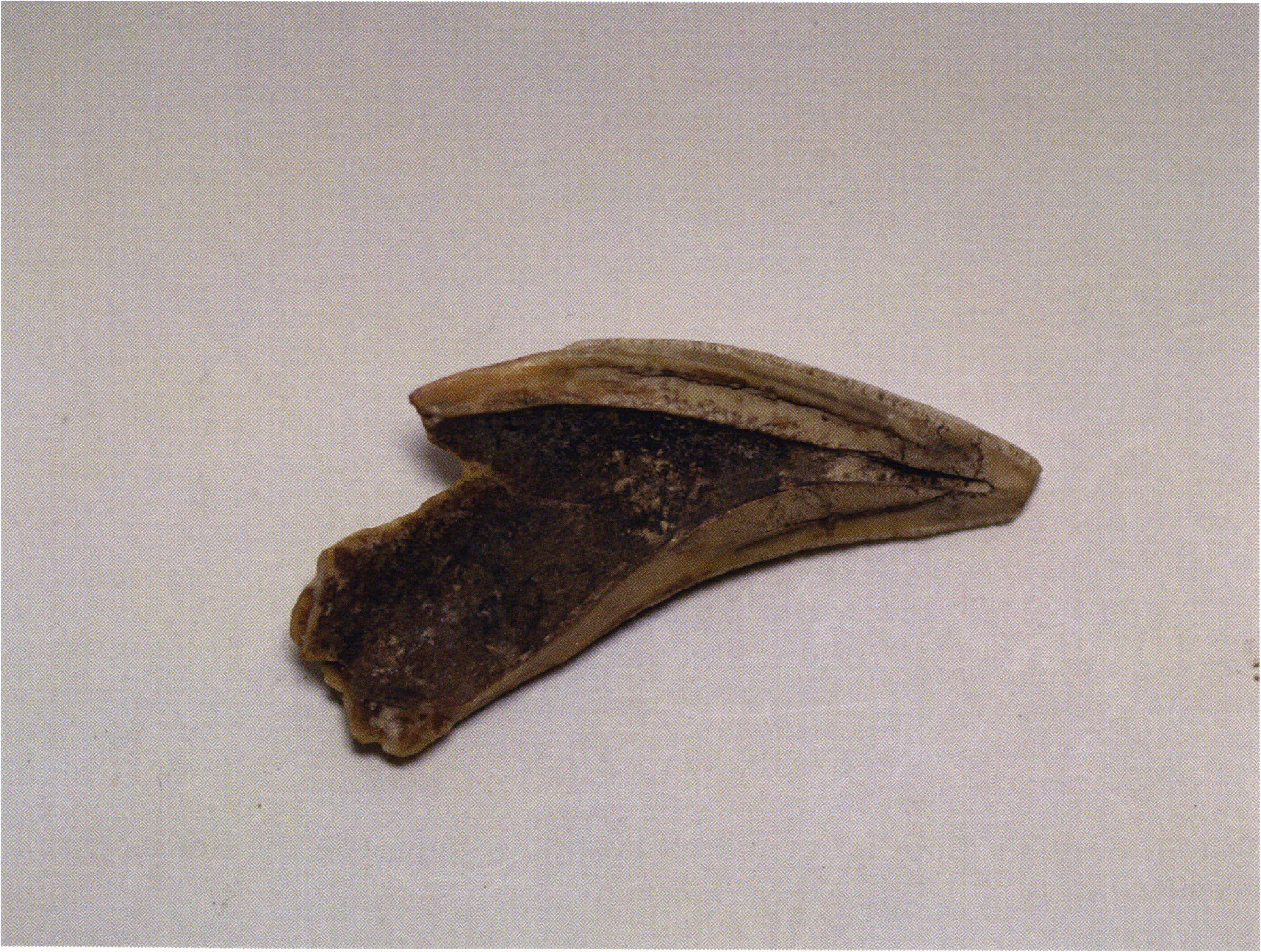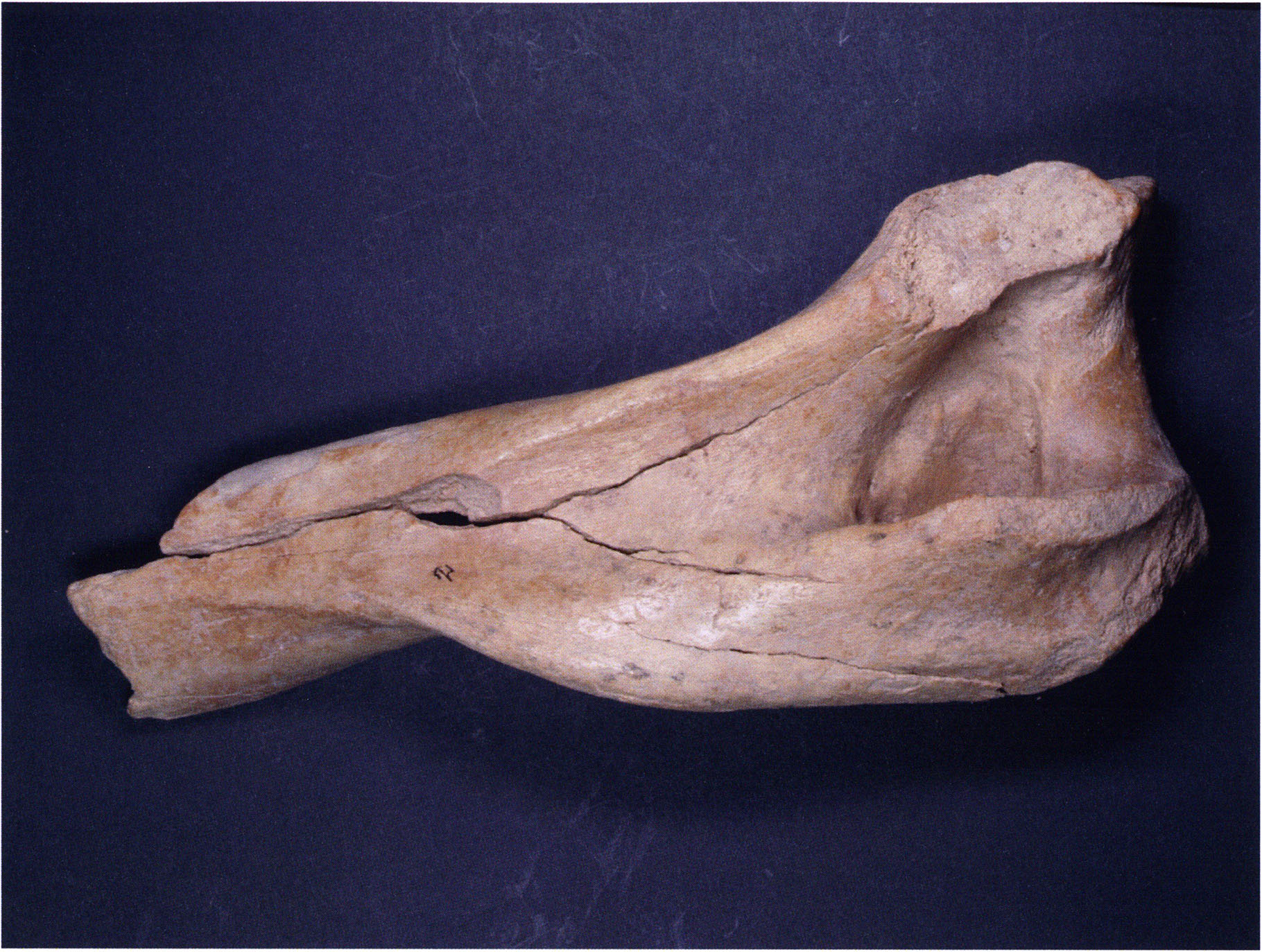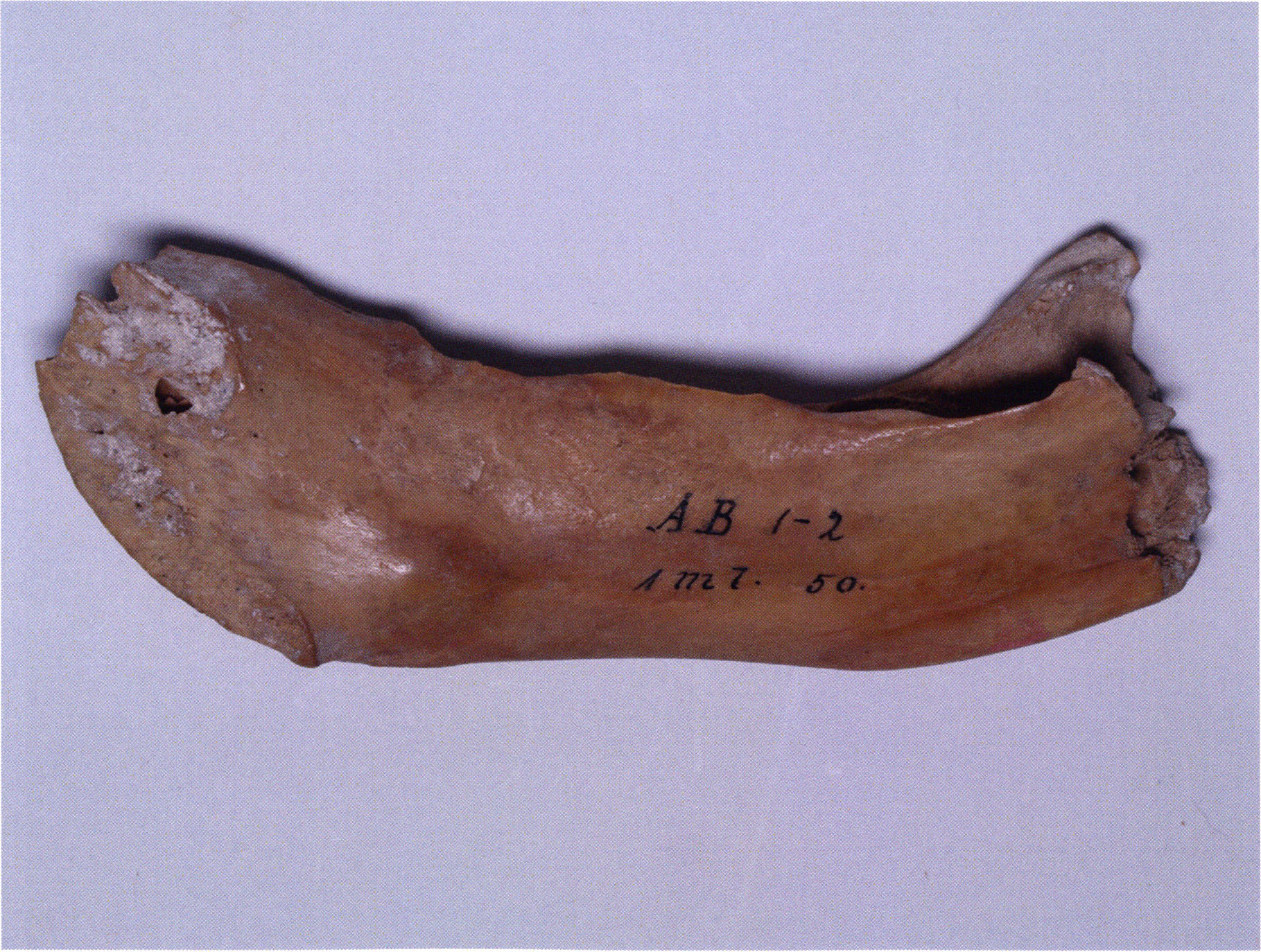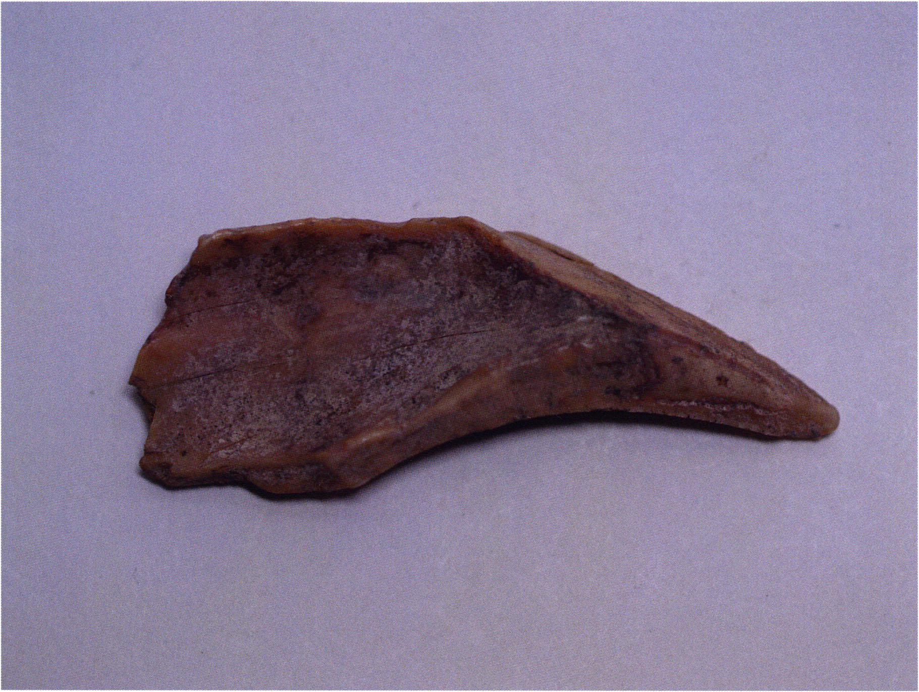 Two reasons presumably prompted Nigg's striking formulation "curious bone fragment" and his uncertainty "ibex?": The bone fragment could not be readily assigned — by its form and size — to the species practically exclusively represented in the Drachenloch, "Ursus spelaeus" (= cave bear), and moreover it was "perforated." Nigg wrote "perforated" and not "it had a hole" because he immediately thought of the activity of man! —