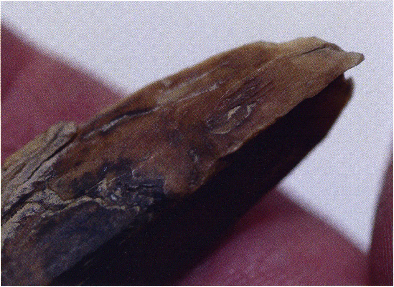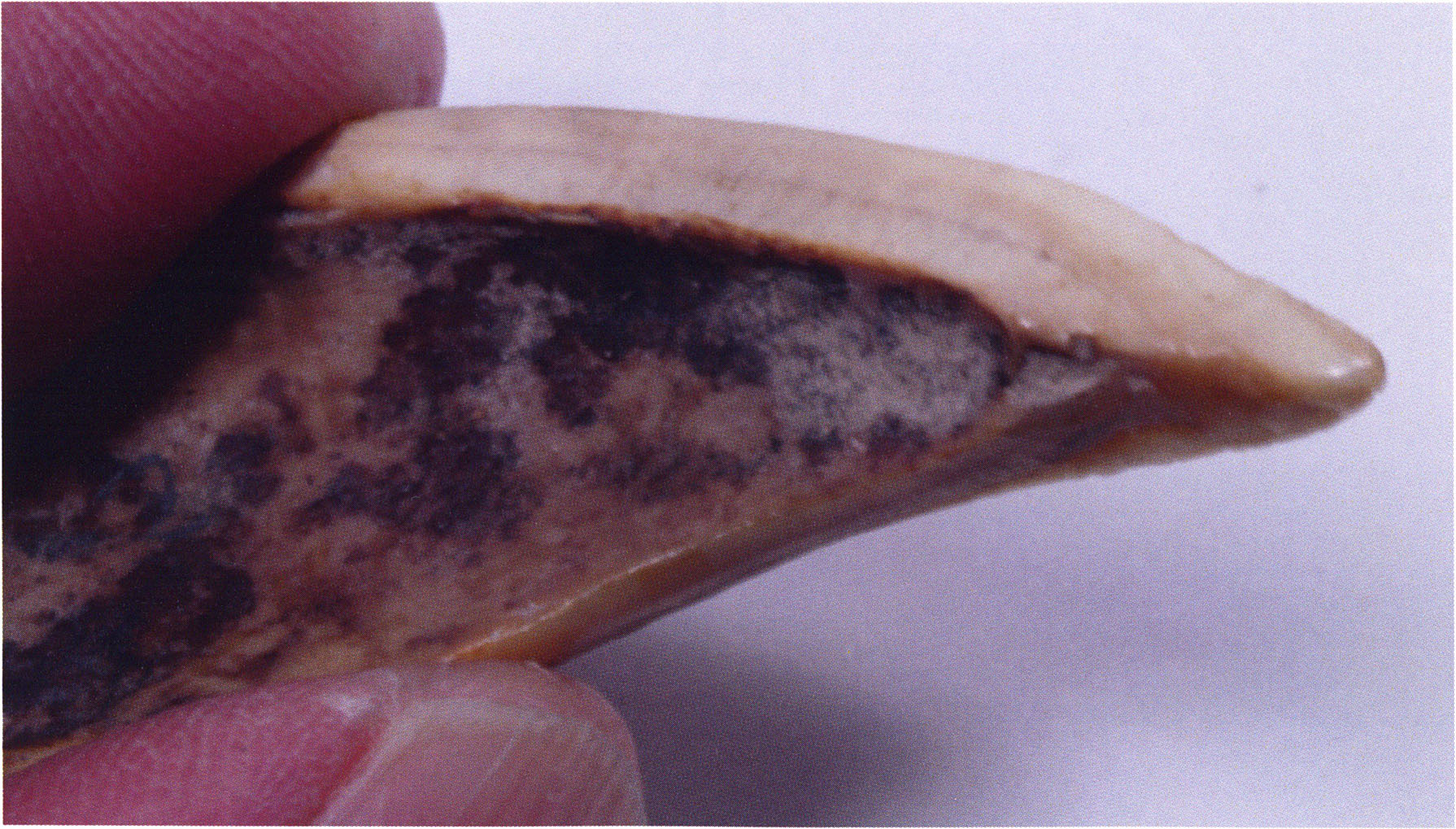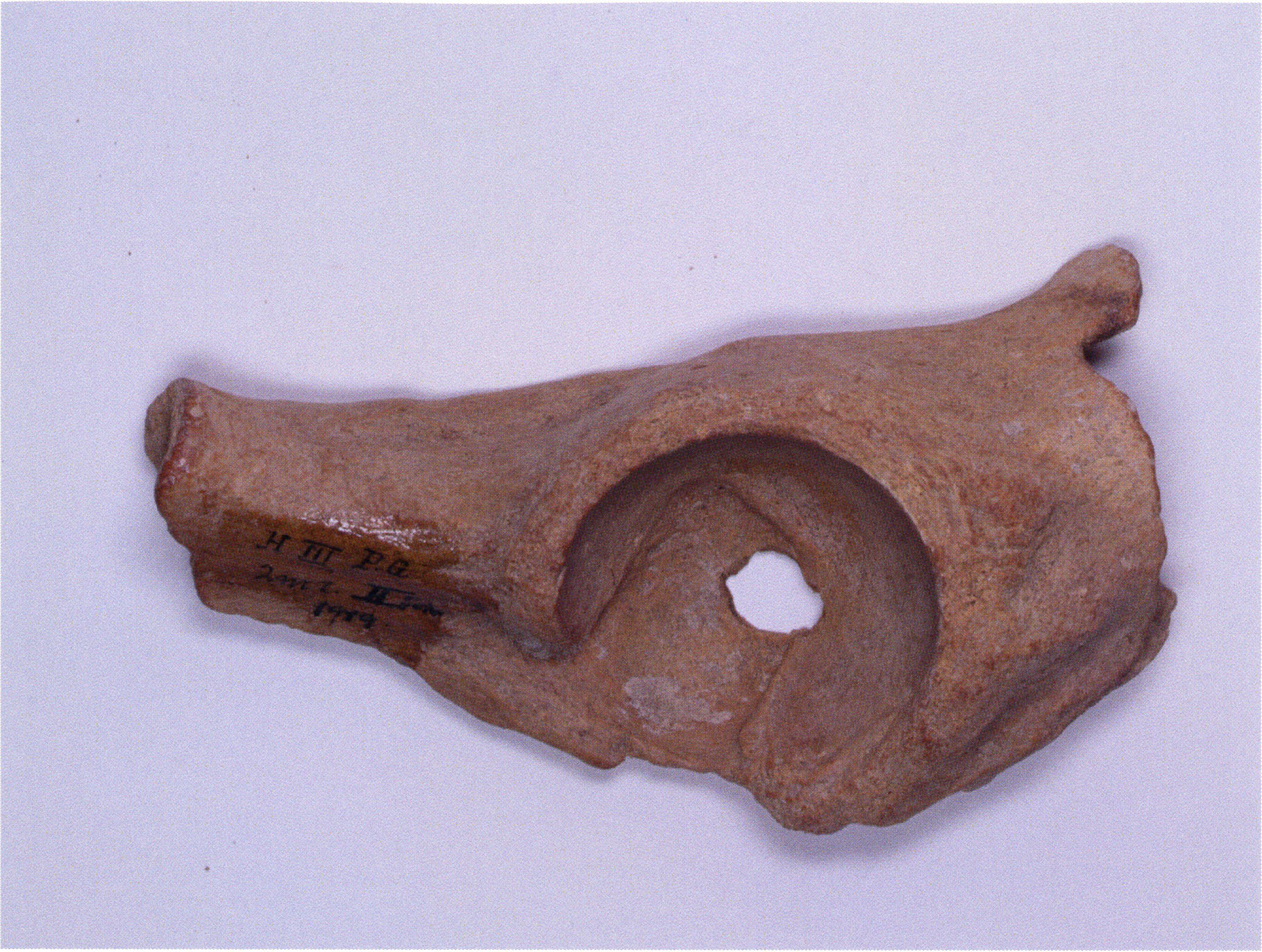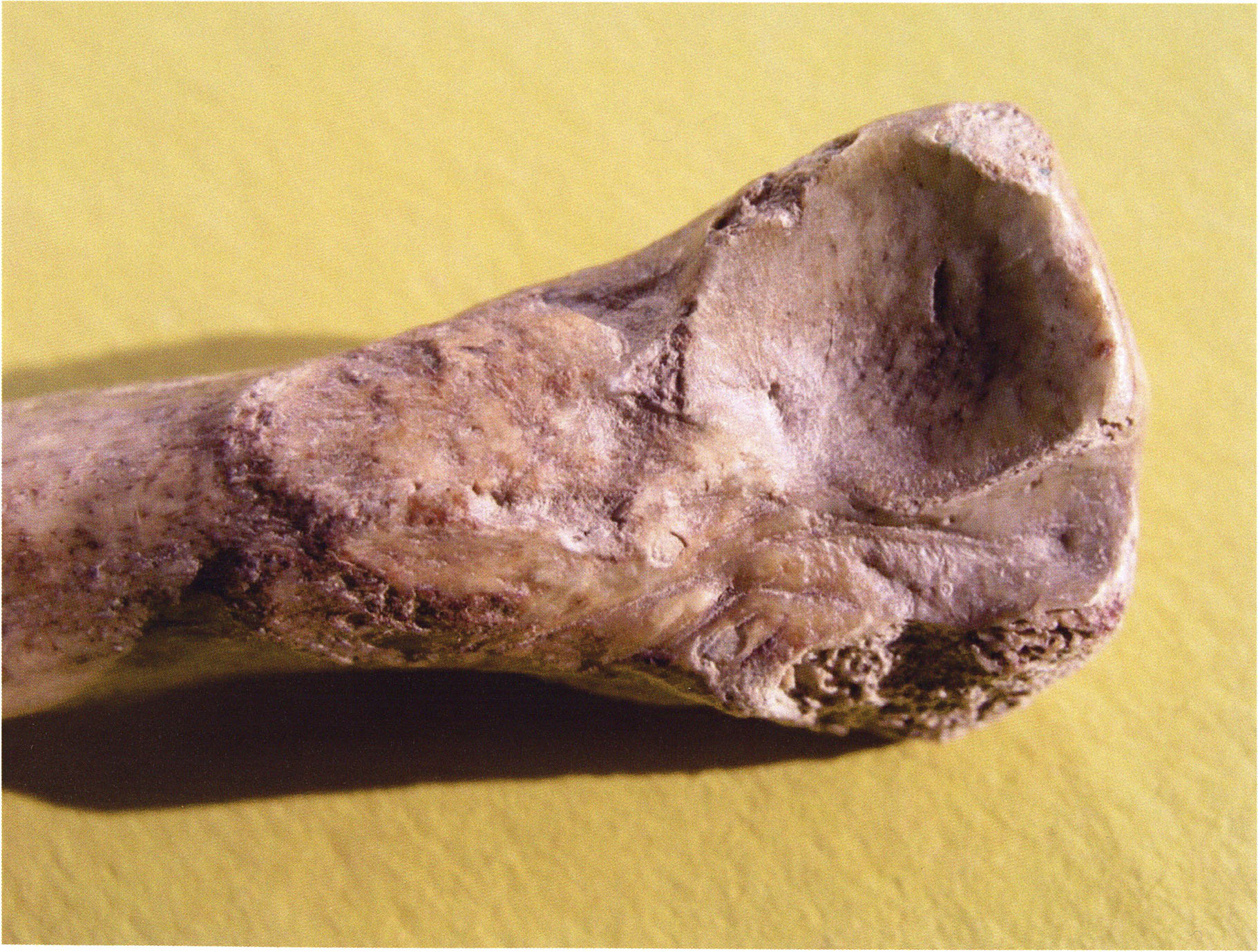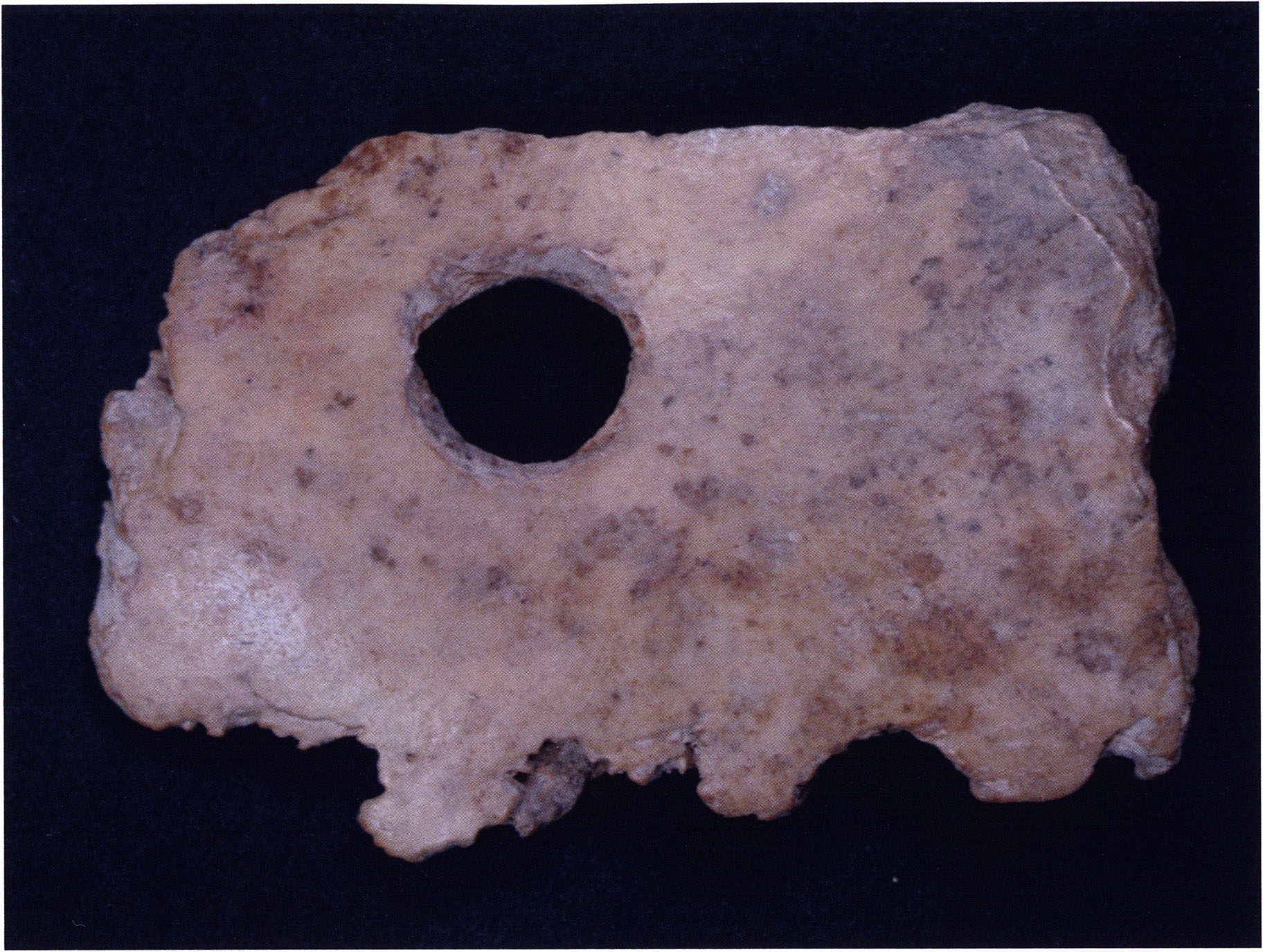 Two reasons presumably prompted Nigg's striking formulation "curious bone fragment" and his uncertainty "ibex?": The bone fragment could not be readily assigned — by its form and size — to the species practically exclusively represented in the Drachenloch, "Ursus spelaeus" (= cave bear), and moreover it was "perforated." Nigg wrote "perforated" and not "it had a hole" because he immediately thought of the activity of man! —