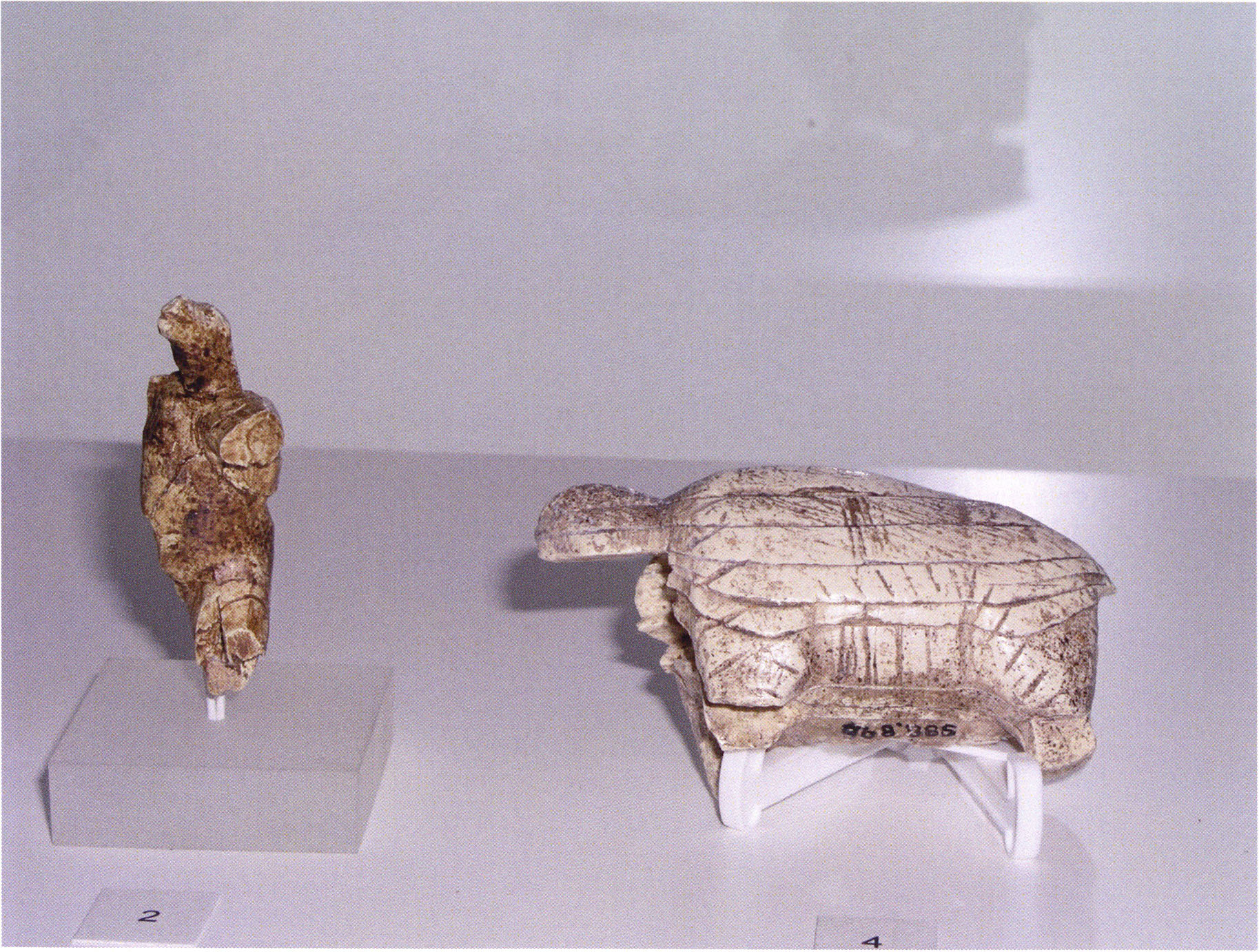 Übrigens scheinen Mensch-Tierdarstellungen und gerade die Mensch-Bärdarstellung nach 40’000 BP im süddeutschen Raum eine gewisse Tradition gehabt zu haben; aus der sitzenden Mensch-Bärfigur wurde eine stehende und der Akt der Geburt war offensichtlich nicht mehr als massgebendes Element dieser Darstellungen empfunden worden - Abb. 18, S. 26.