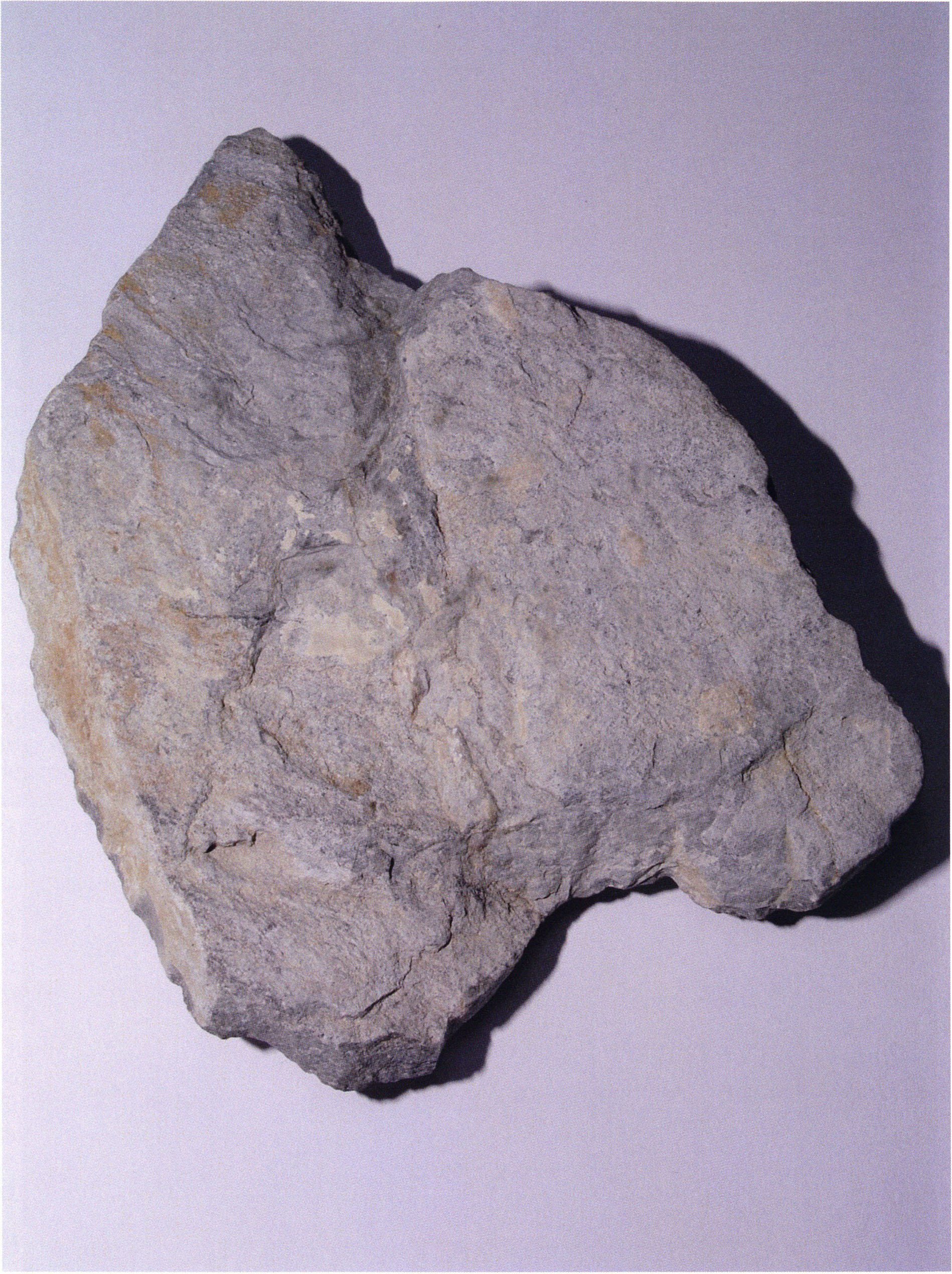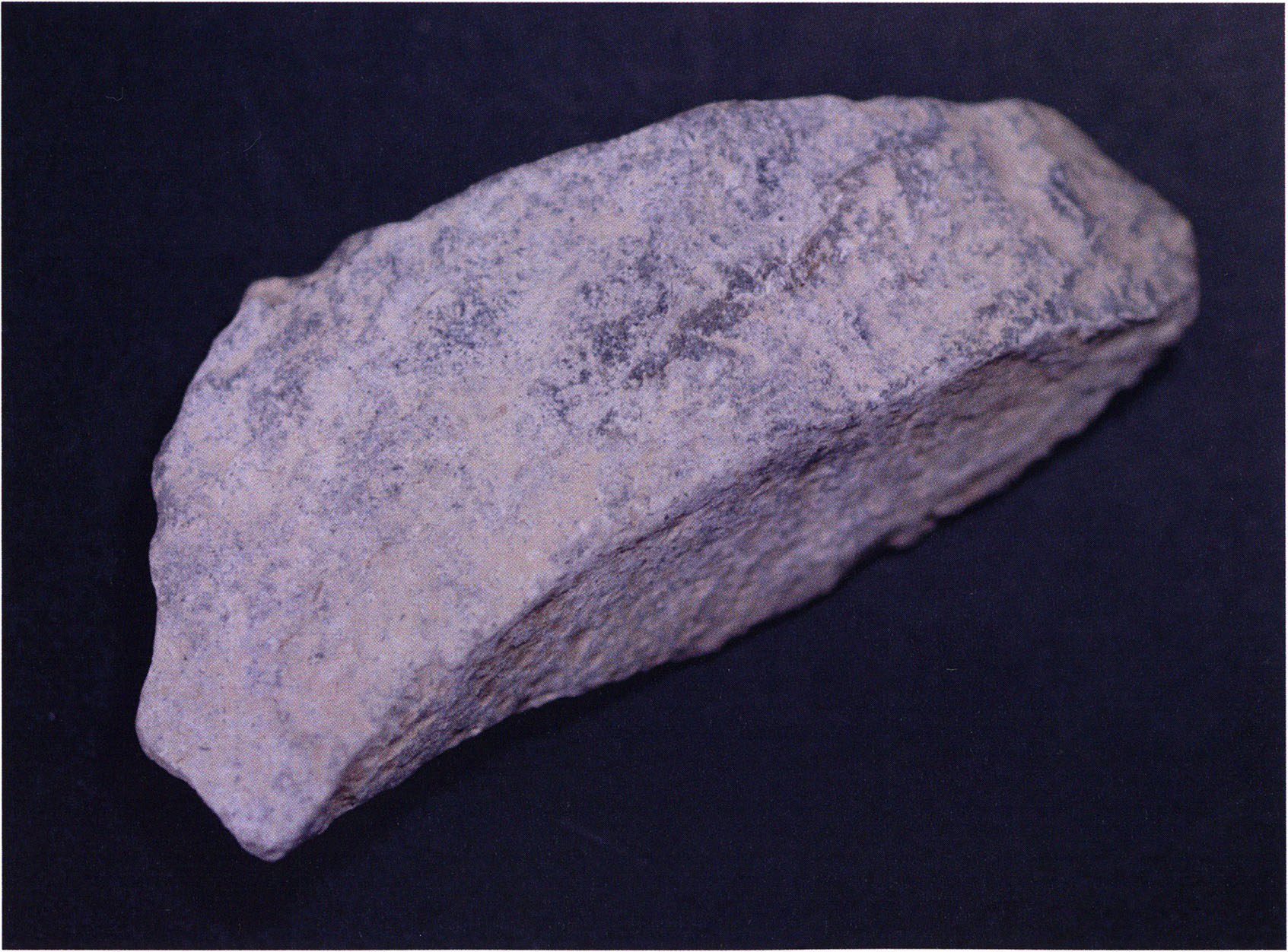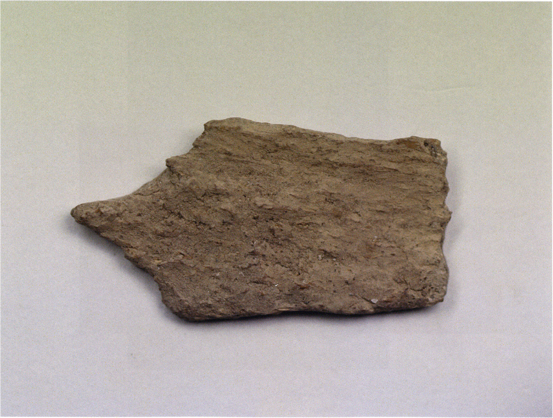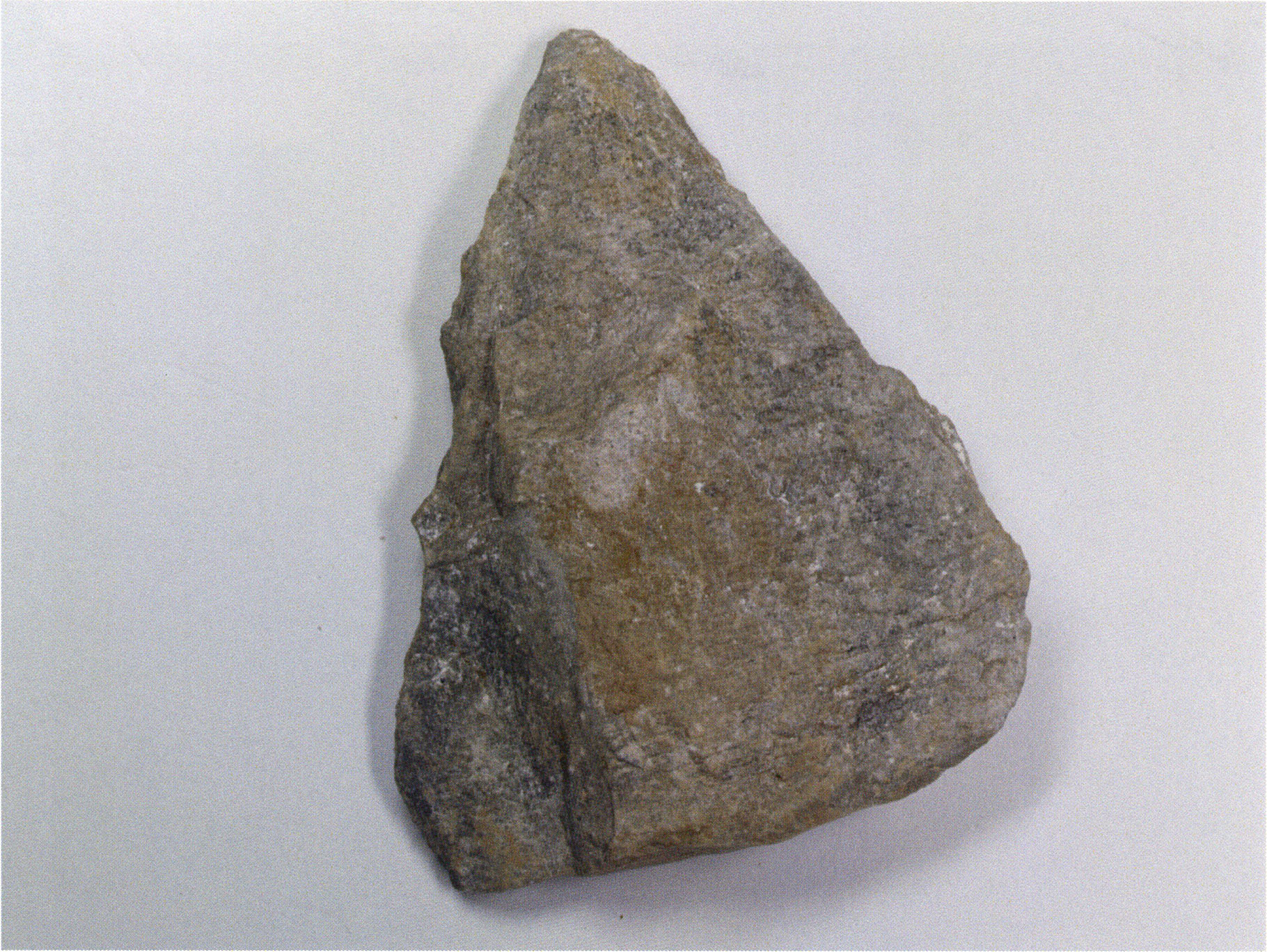 Fig. 142, p. 303: The quartzite piece found in the first section metre of H III toward the left wall in the 4th layer — undoubtedly brought there from outside the cave by man as a foreign body ("manuport"!).