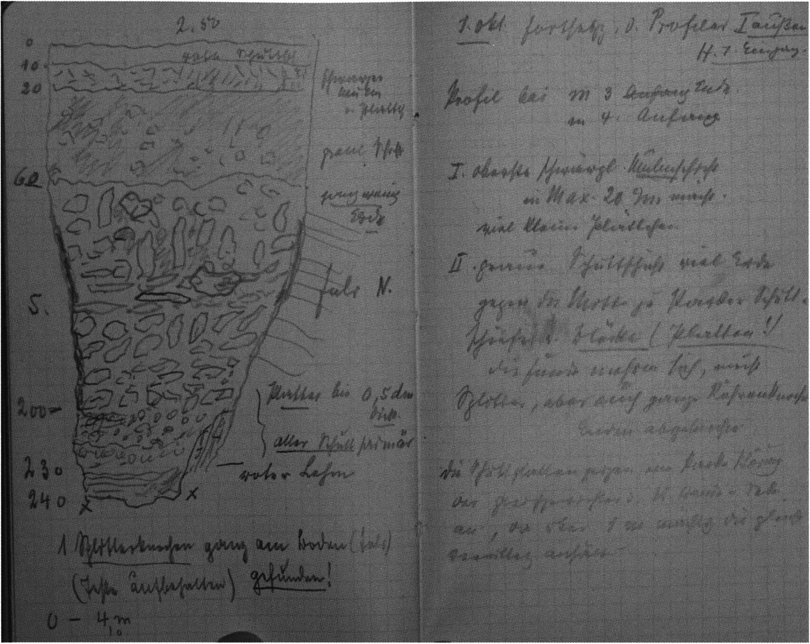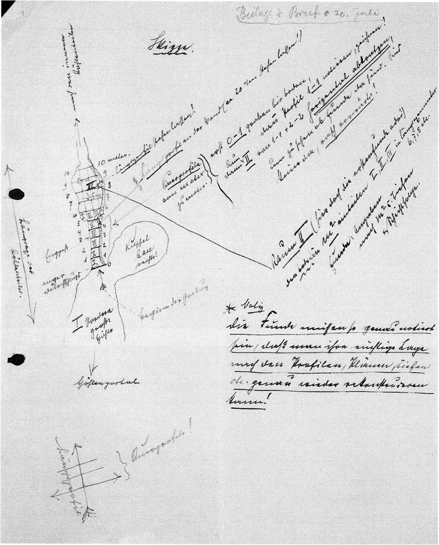 Kursivschrift: Protokolle und Briefe der Ausgräber.