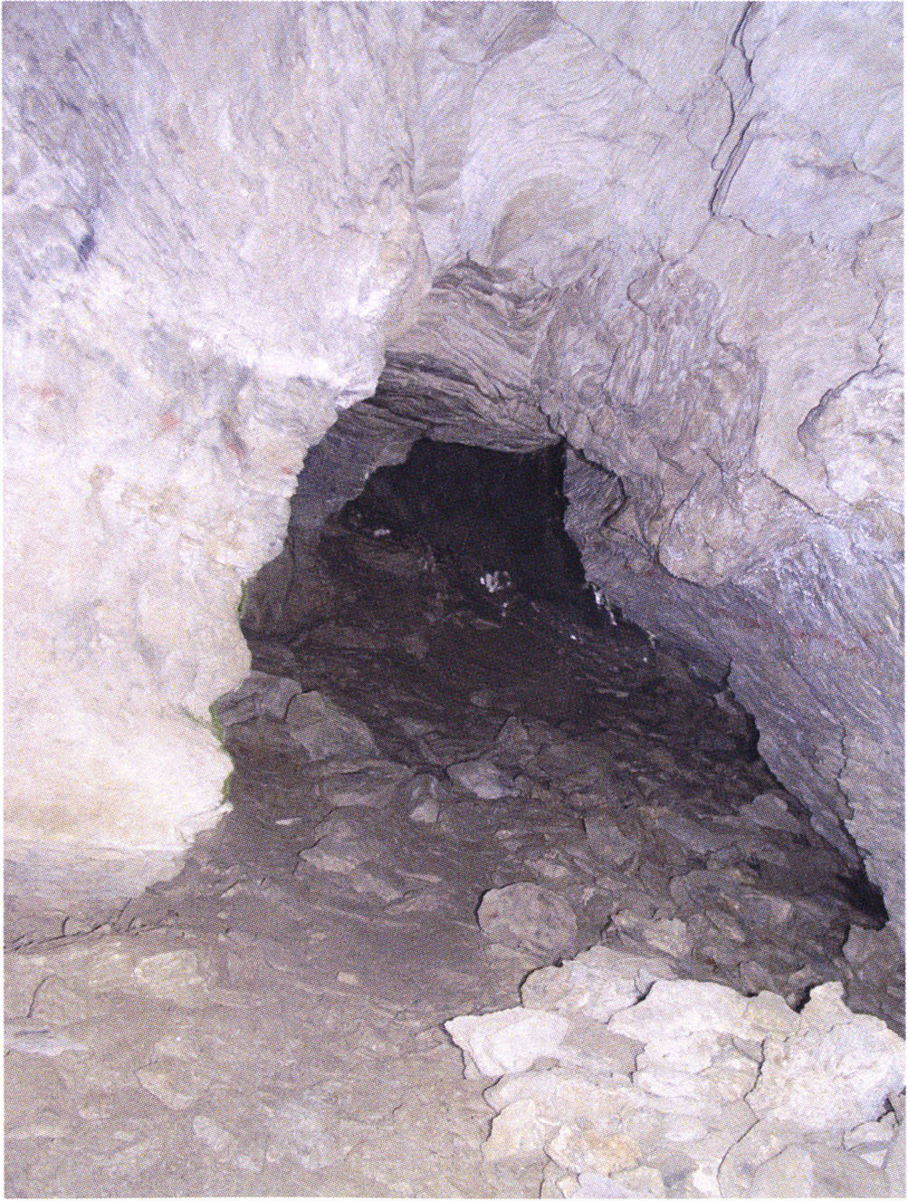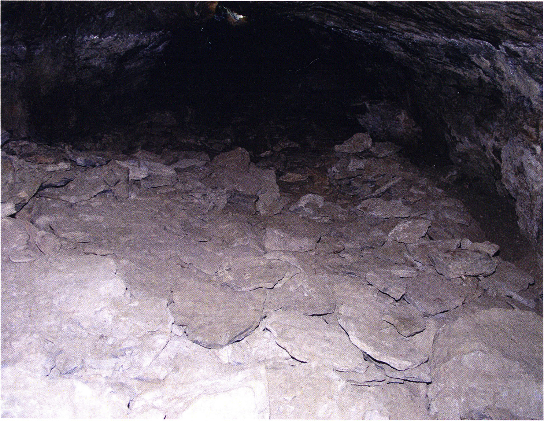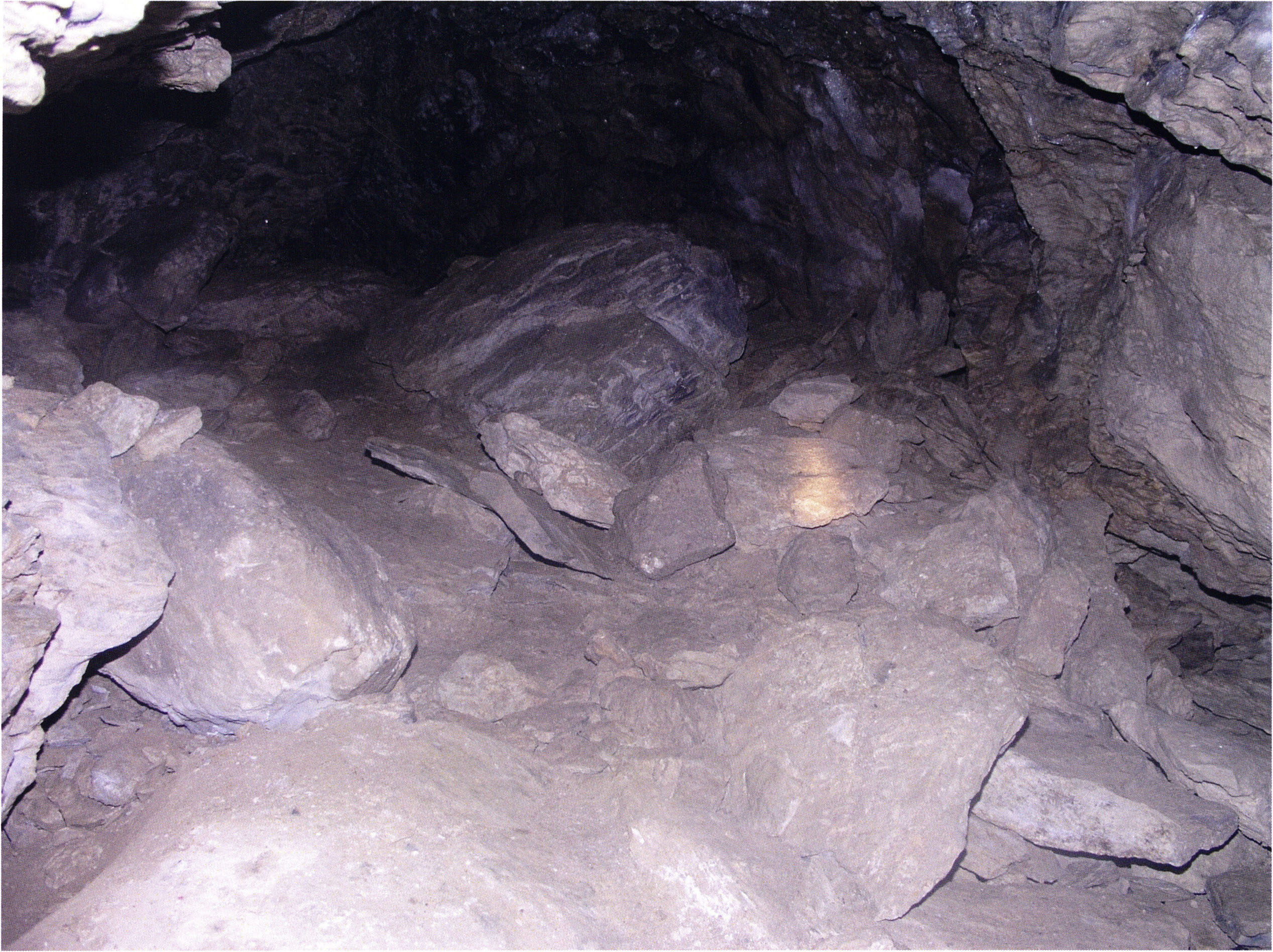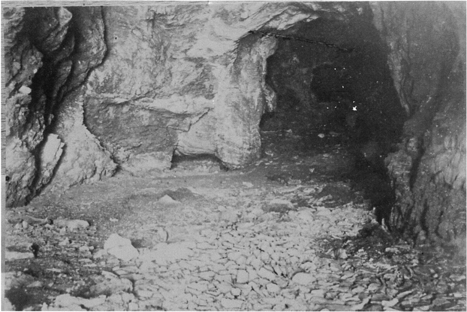 Fig. 152, p. 322: Cave section III and II photographed from the very rear; in the foreground a heap of broken slabs and in the right corner the end of a 2–2½ m long collapse block!