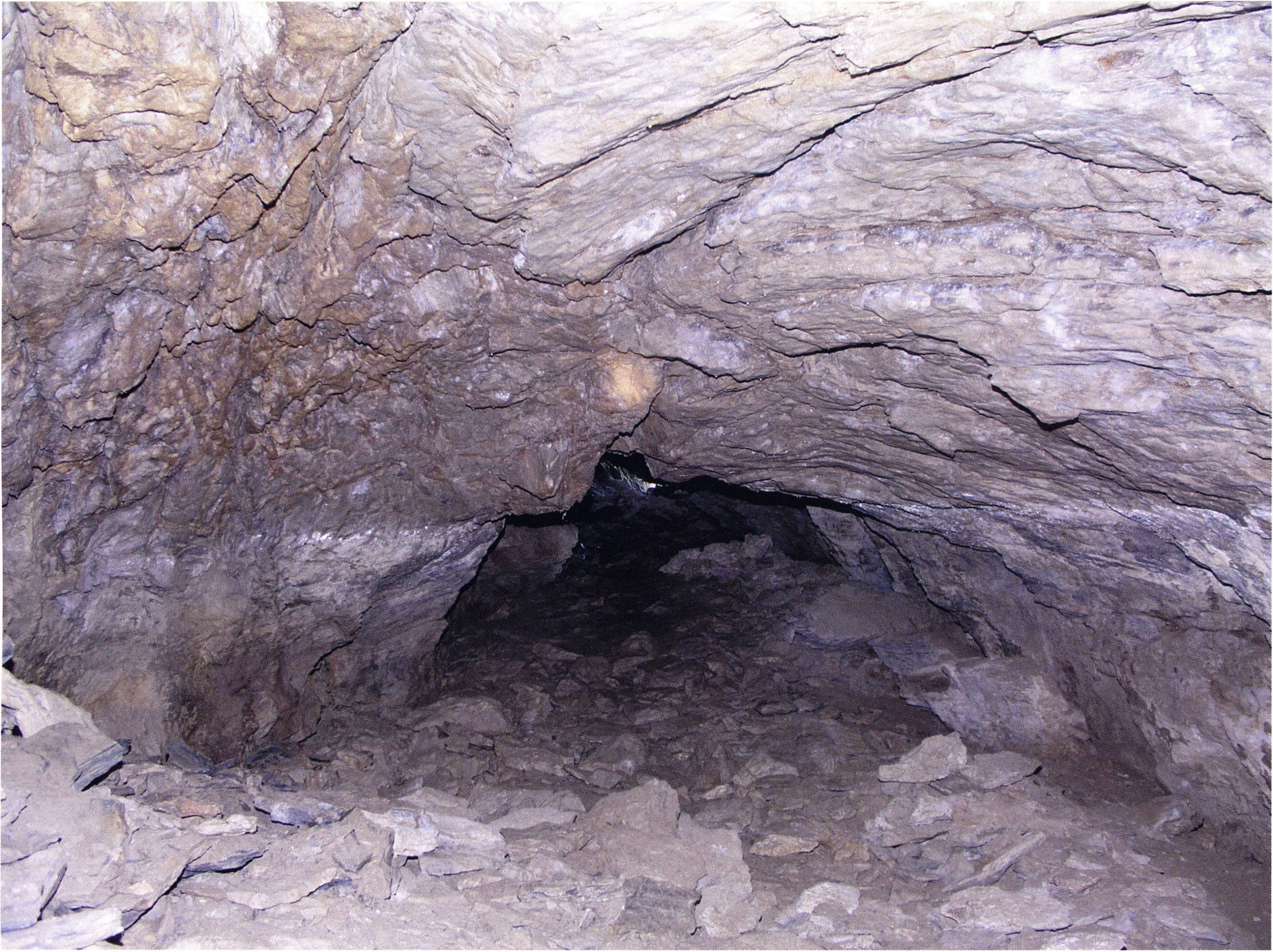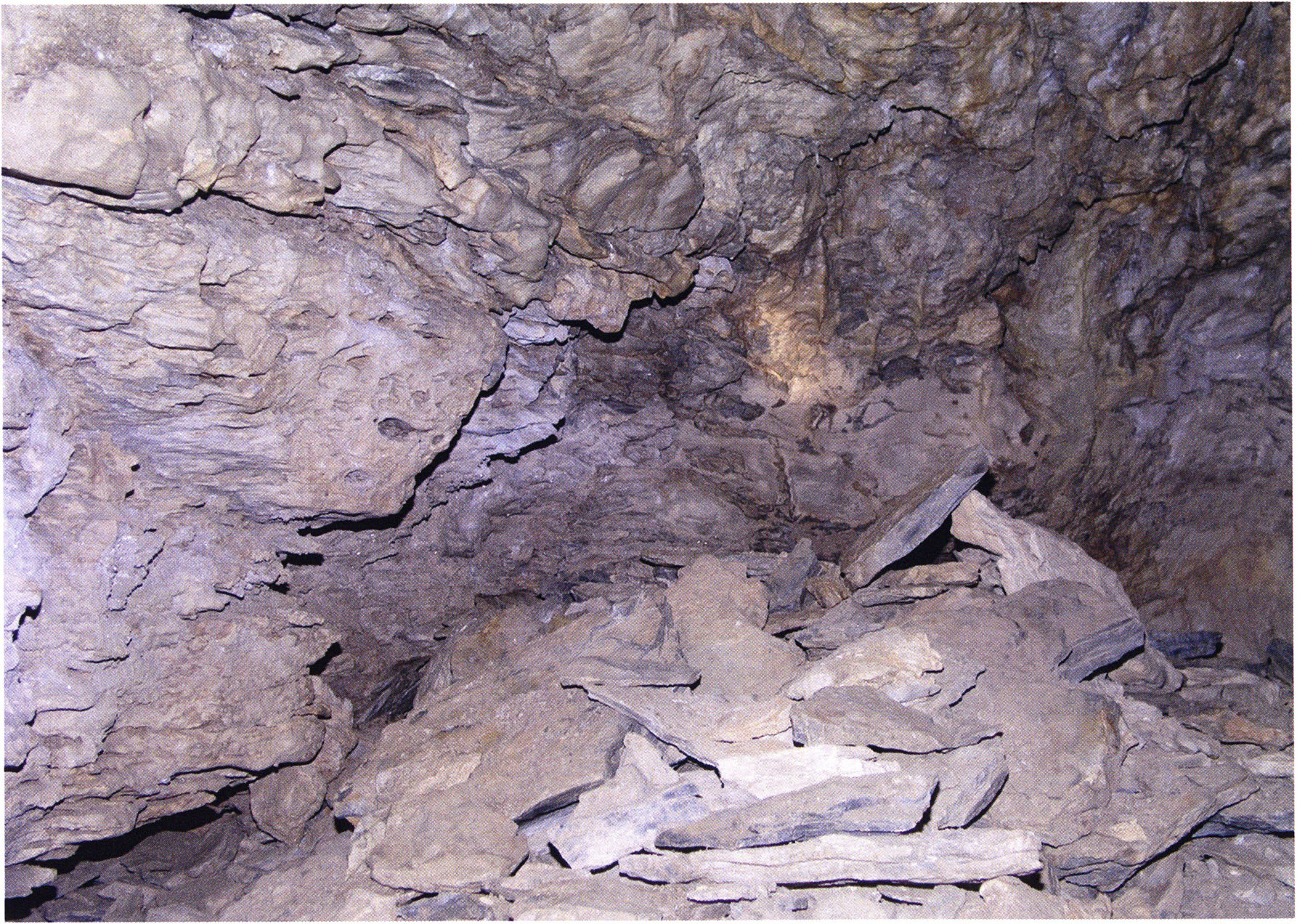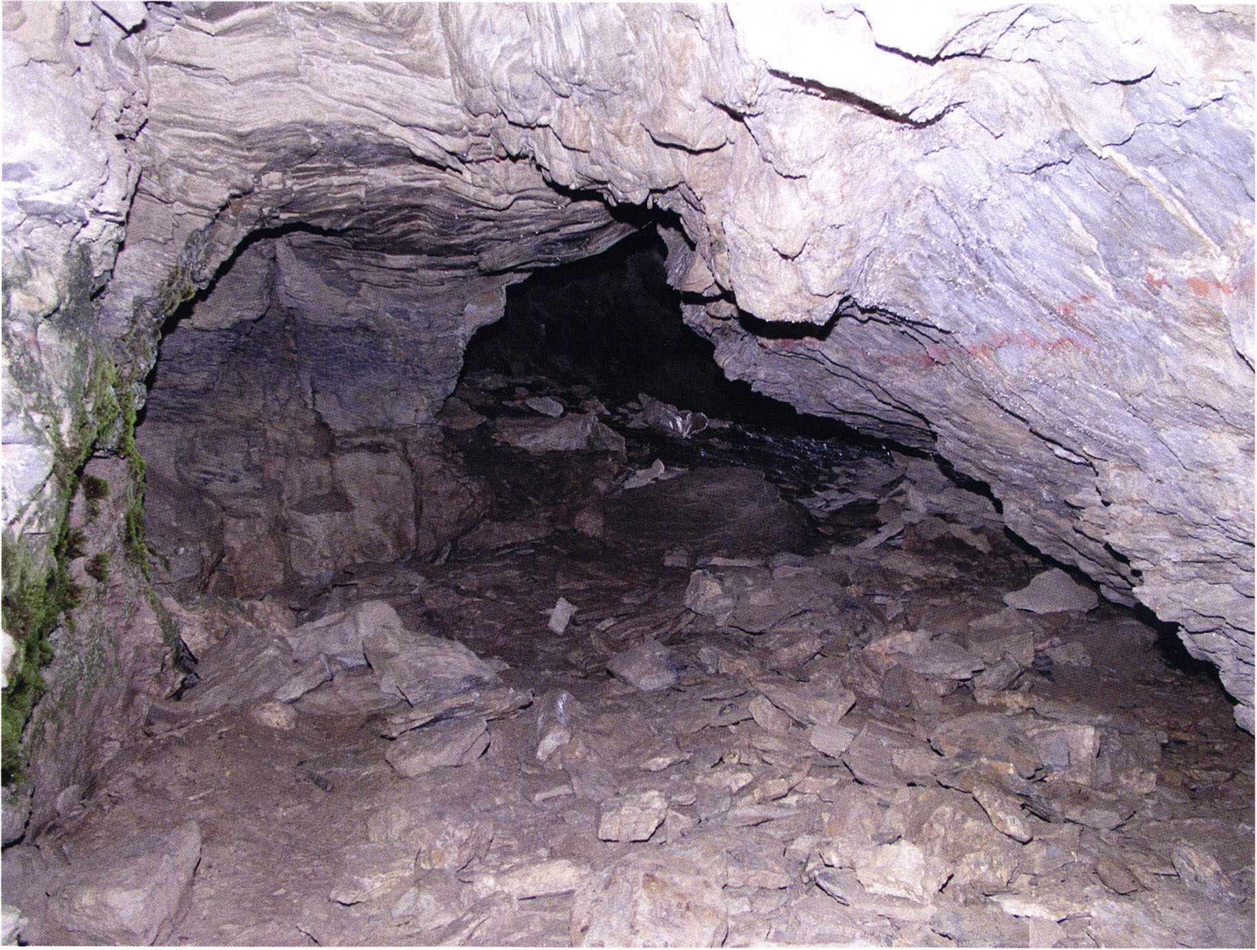 Fig. 152, p. 322: Cave section III and II photographed from the very rear; in the foreground a heap of broken slabs and in the right corner the end of a 2–2½ m long collapse block!