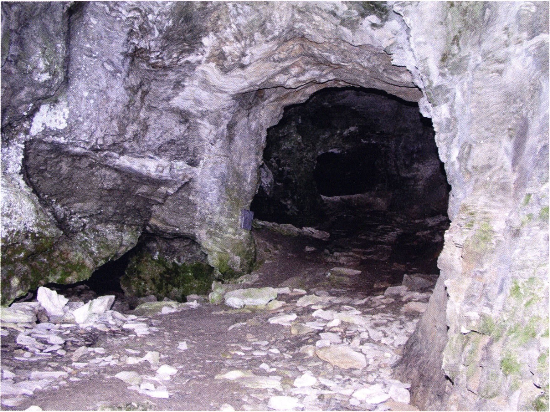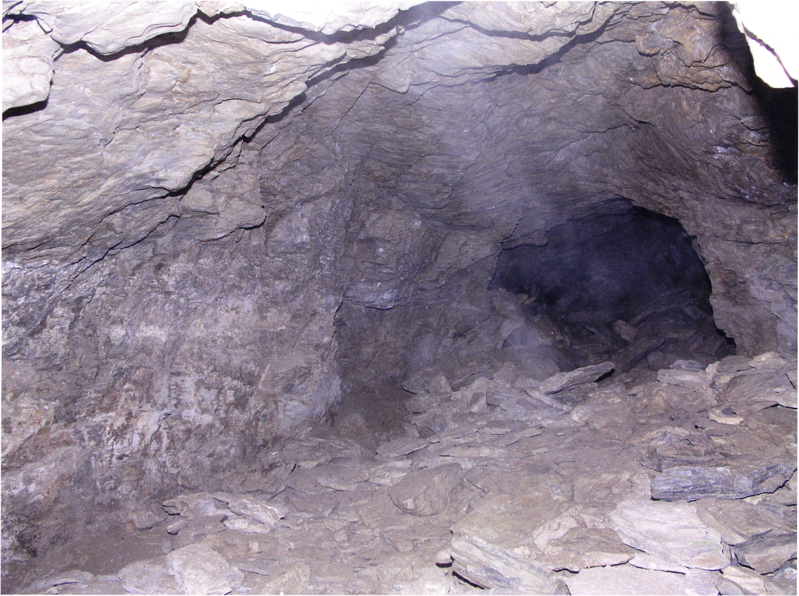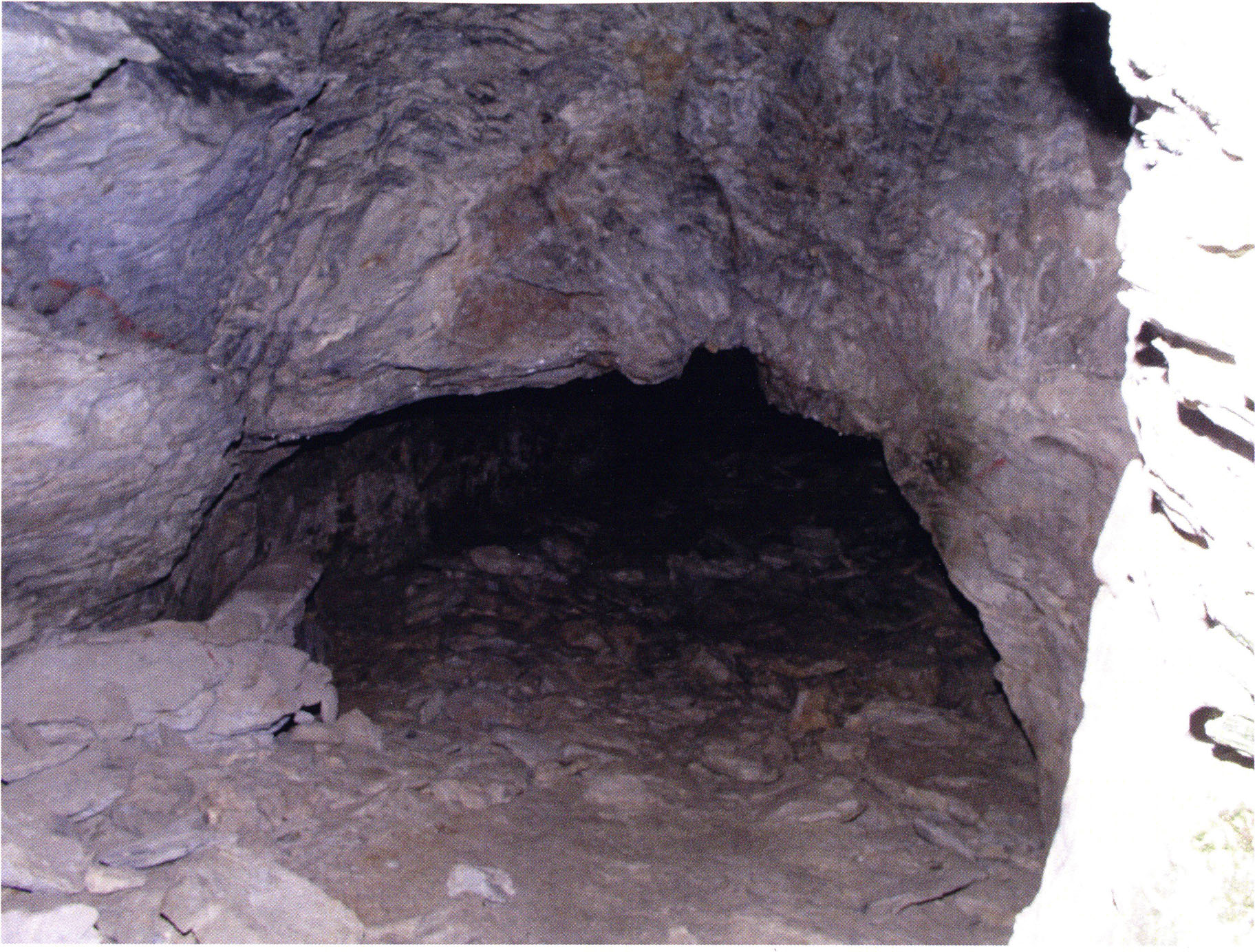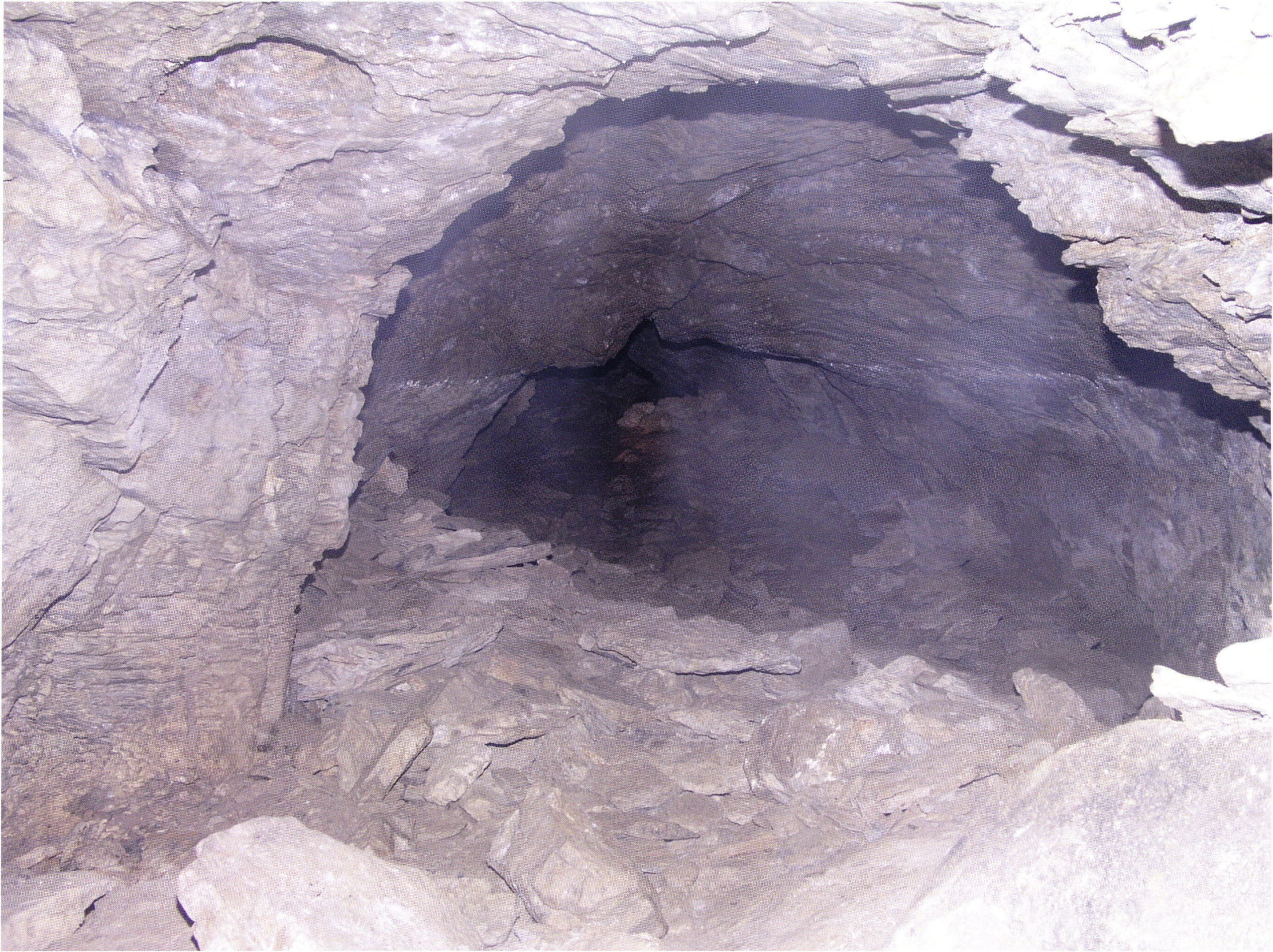 Fig. 152, p. 322: Cave section III and II photographed from the very rear; in the foreground a heap of broken slabs and in the right corner the end of a 2–2½ m long collapse block!