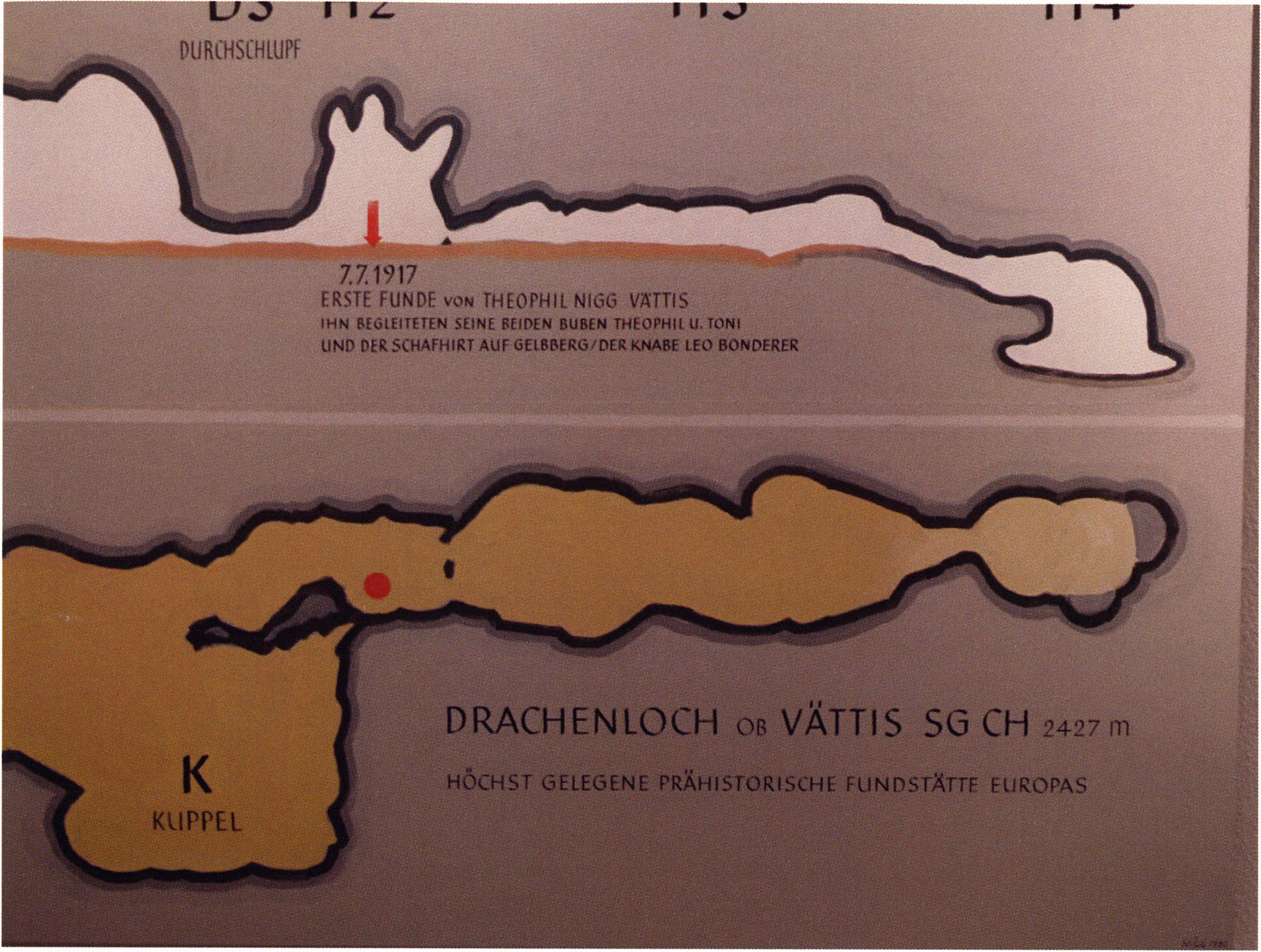 Besonders aber Doris Wobmann, die im Ortsmuseum von Vättis zusammen mit ihren Vertreterinnen die Bastion “Drachenloch-Ausgrabungen 1917 – 23” eisern und uneinnehmbar hält und die Besucher durch die noch vom Sohn Theophil Niggs, Toni Nigg, gestaltete und 1987 eröffnete Ausstellung führt, für ihre warmherzige Zusammenarbeit und Unterstützung.