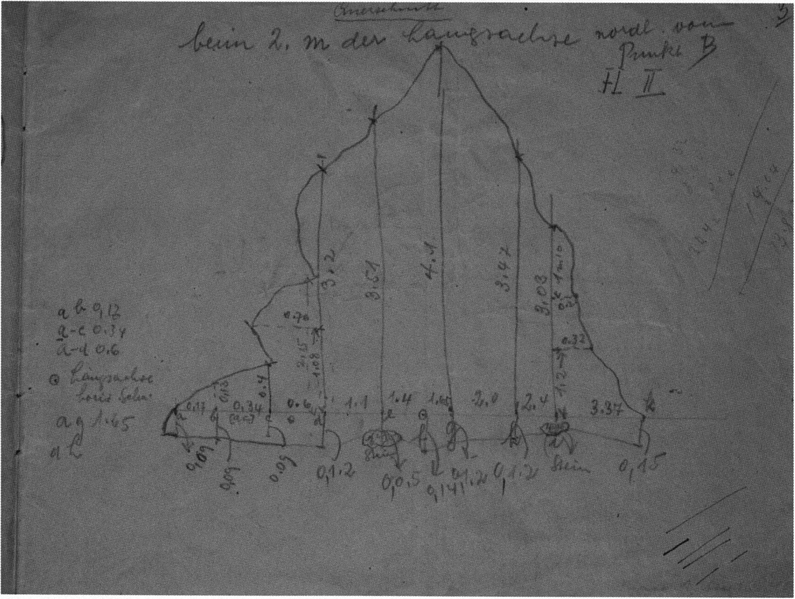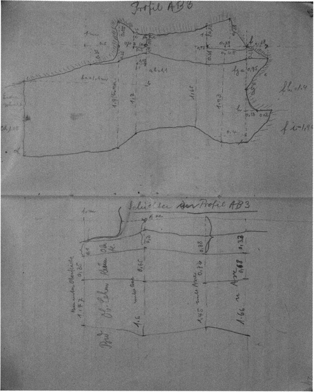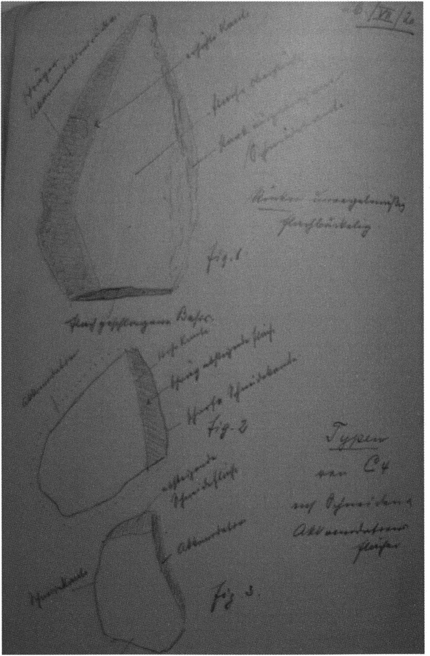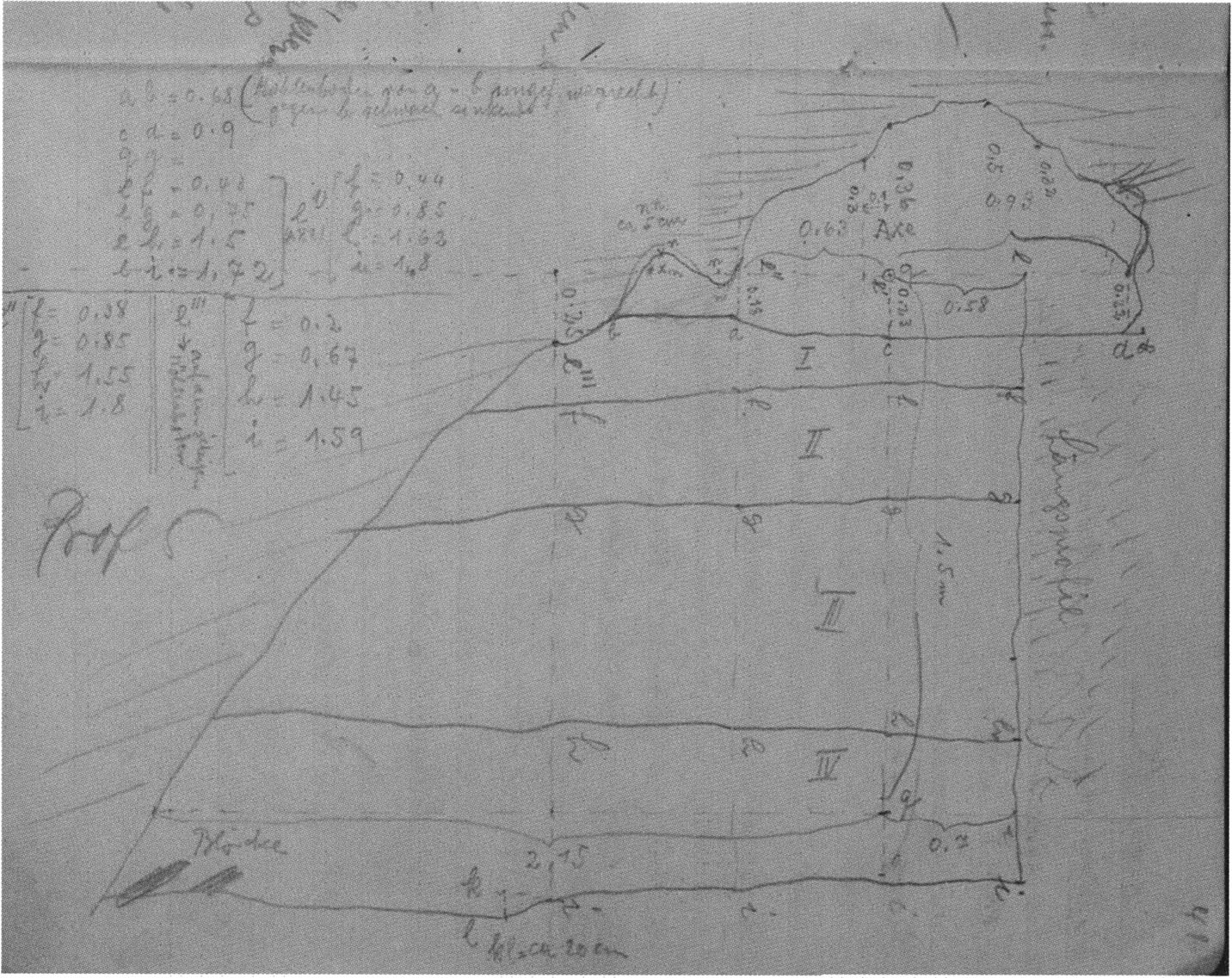 Fig. 149, p. 318: Nigg's cross-section drawing of 26 August 1921 of section 4 at 3 metres in H III — D V/6 sketchbook (S) II, p. 4!