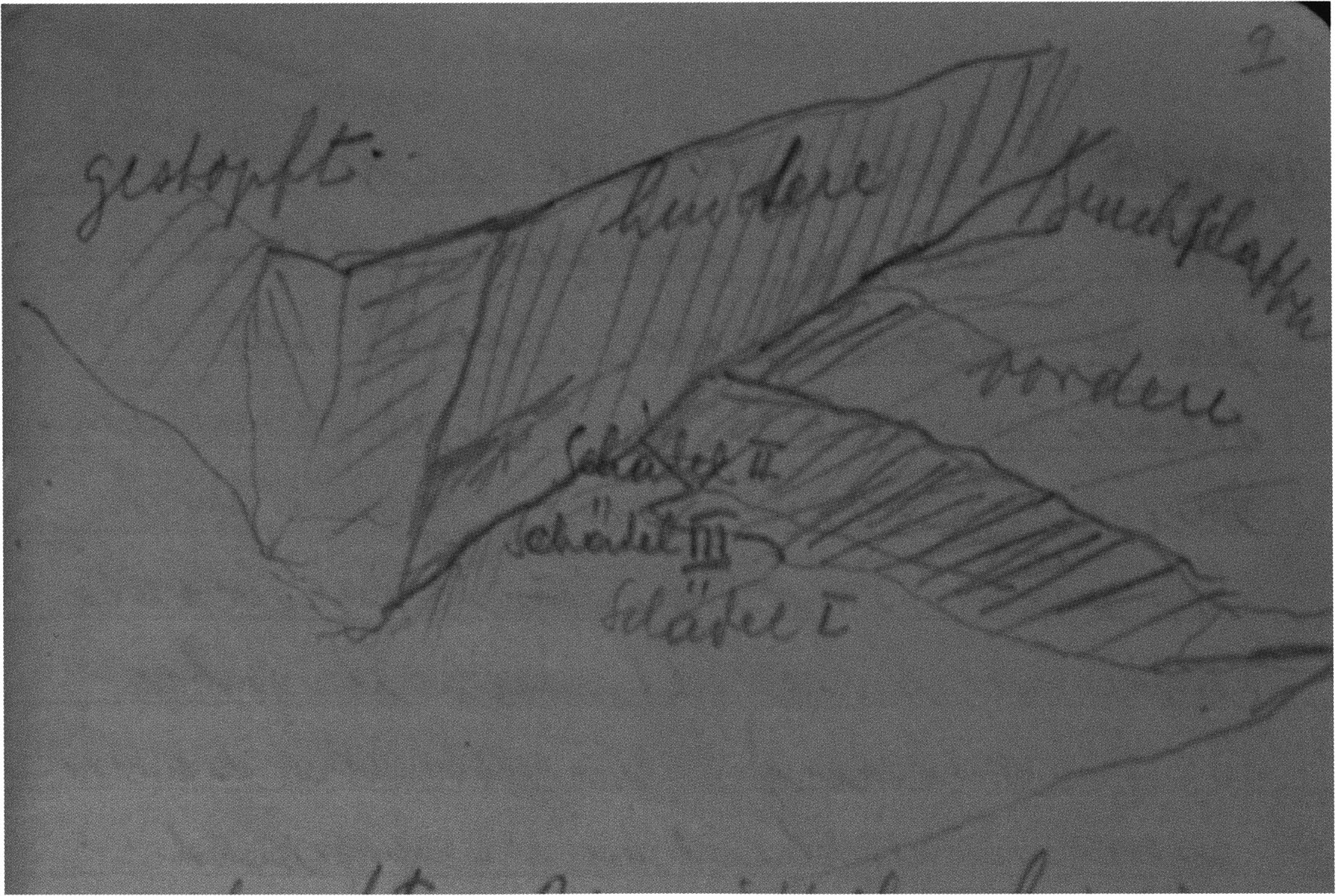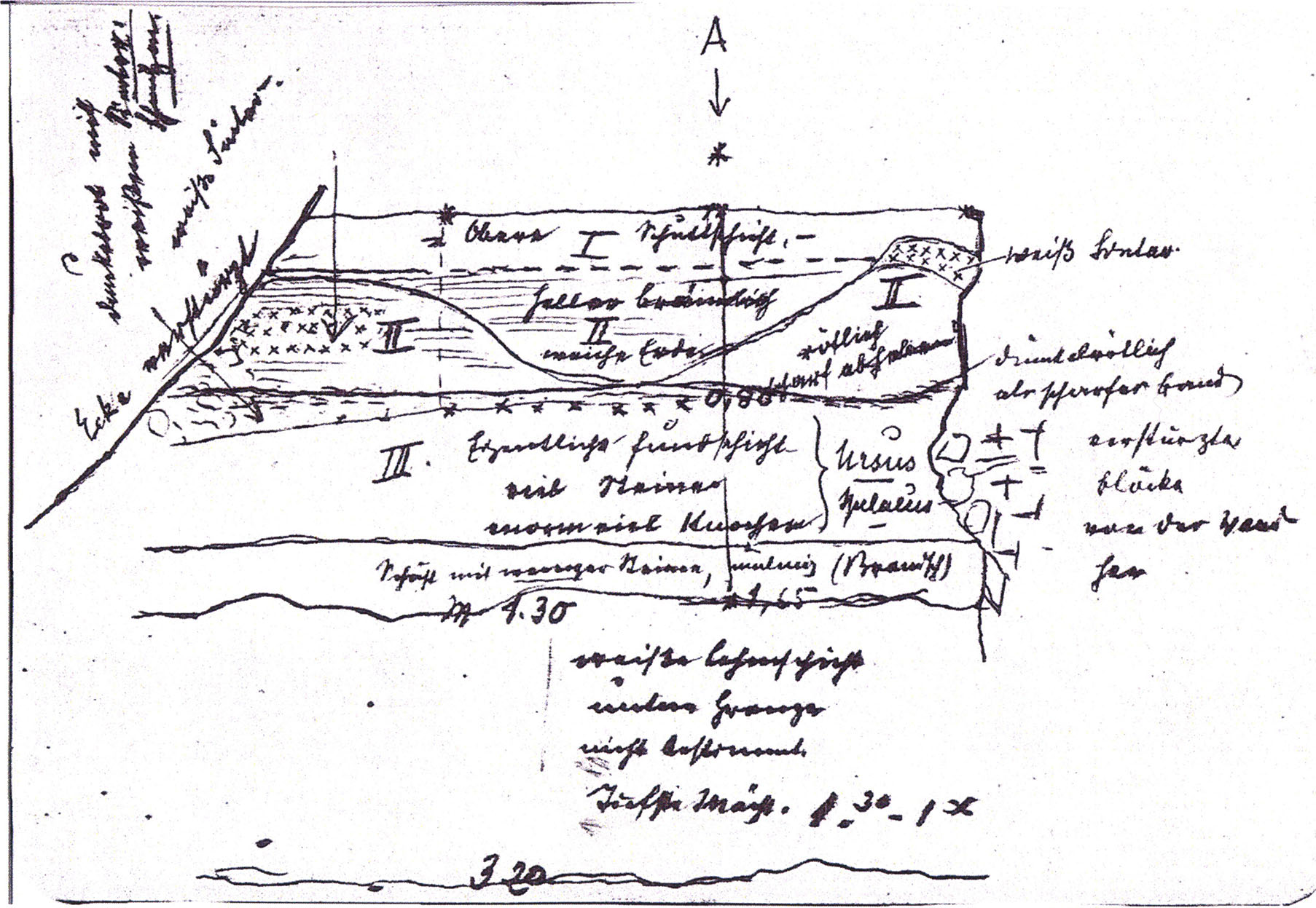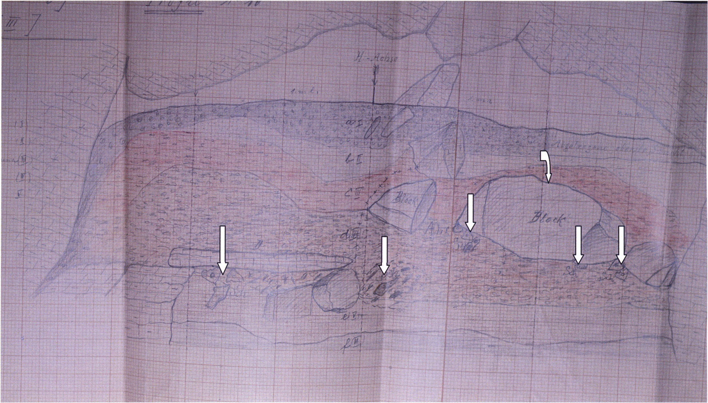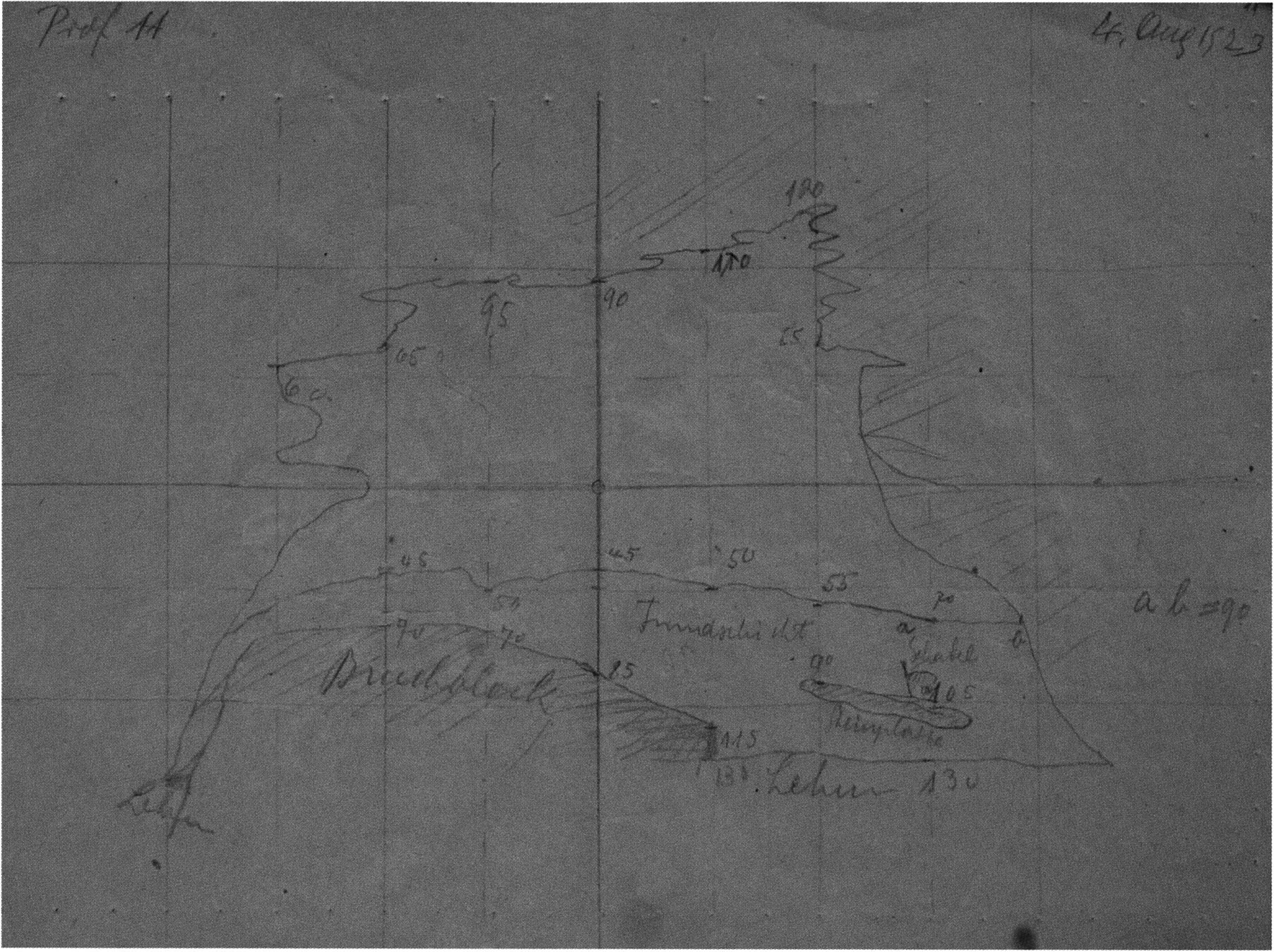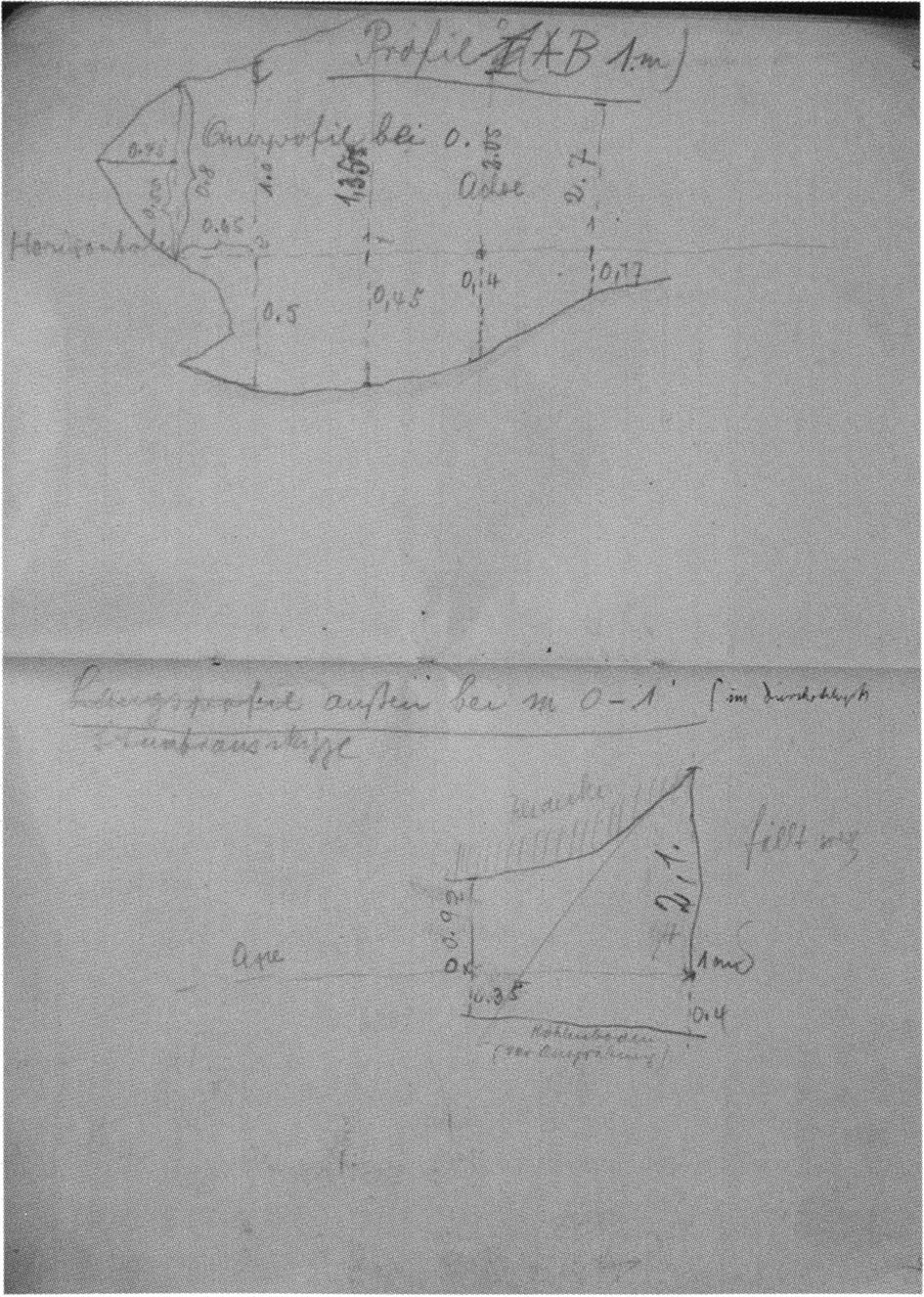 Fig. 149, p. 318: Nigg's cross-section drawing of 26 August 1921 of section 4 at 3 metres in H III — D V/6 sketchbook (S) II, p. 4!
