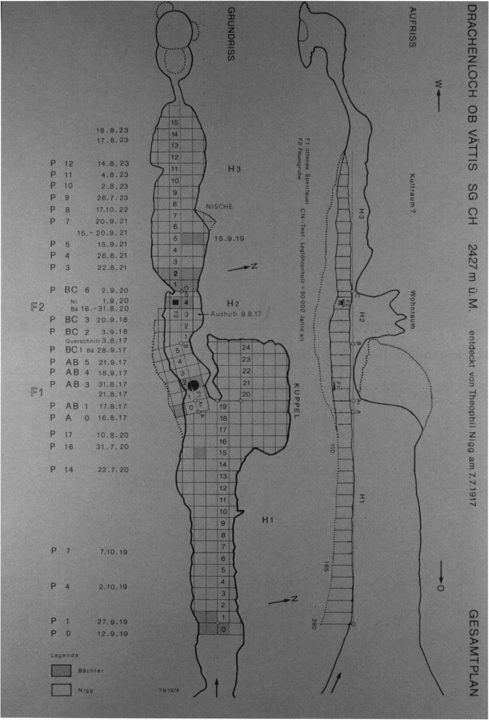 Dieses Manco beseitigte der Sohn Theophil Niggs, im Jahre 1978 durch die Herausgabe von “Meine Höhlentagebücher vom Drachenloch, Theophil Nigg”, d. h. der Protokolle Niggs insoweit nicht, als er die Protokolle Bächlers bis auf eine unkommentierte Stelle unberücksichtigt liess.