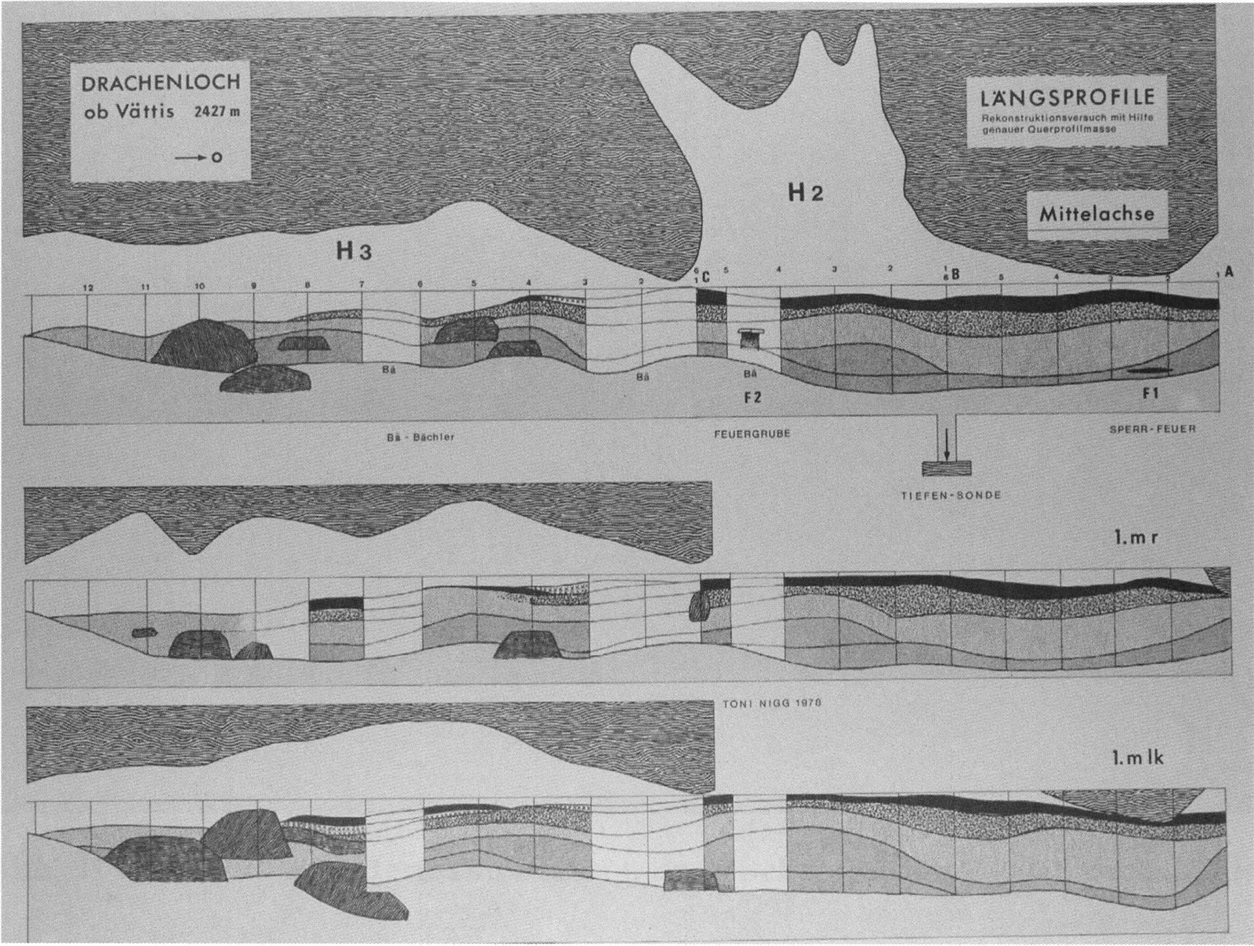 Eine solch umfassende Dokumentation fehlte bis jetzt und drängte sich schon längst um so mehr auf, als bereits Emil Bächler in seinen Drachenlochpublikationen von 1921 und 1940 die Ausgrabungsergebnisse, die sich aus den von Nigg und seiner eigenen Person (!) exakt niedergschriebenen Grabungsprotokollen ergeben hätten, in unzulässiger Weise frei zusammenfasste, indem er über den Einzelbefund hinwegsah bzw. die Einzelbefunde teilweise sogar kombinierte und so den Befunden ein von den Ausgräbern nie angetroffenes, neu von ihm geschaffenes Aussehen gab !