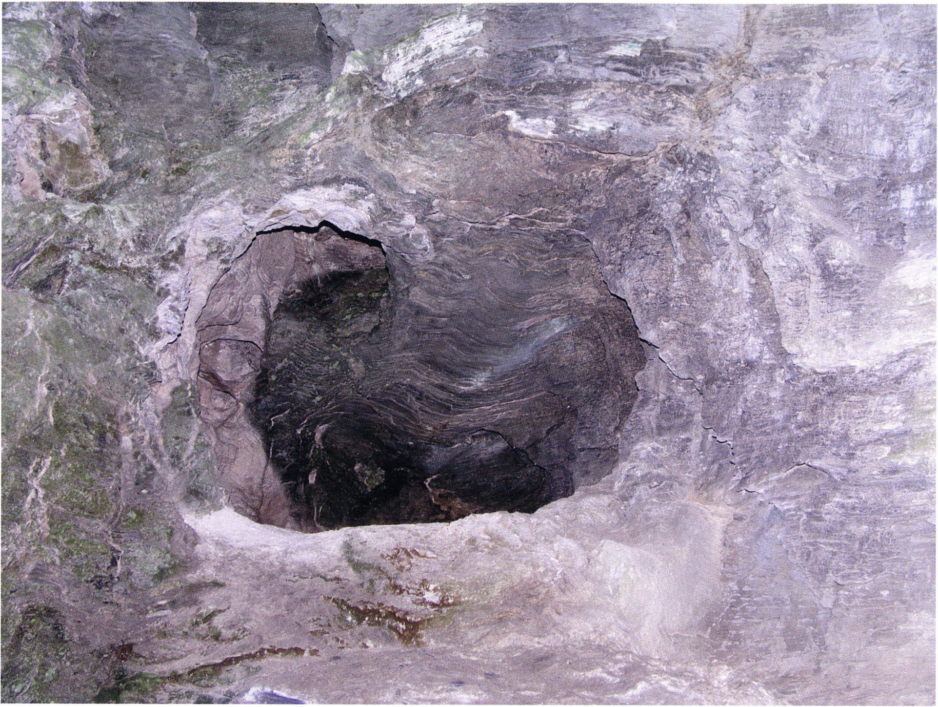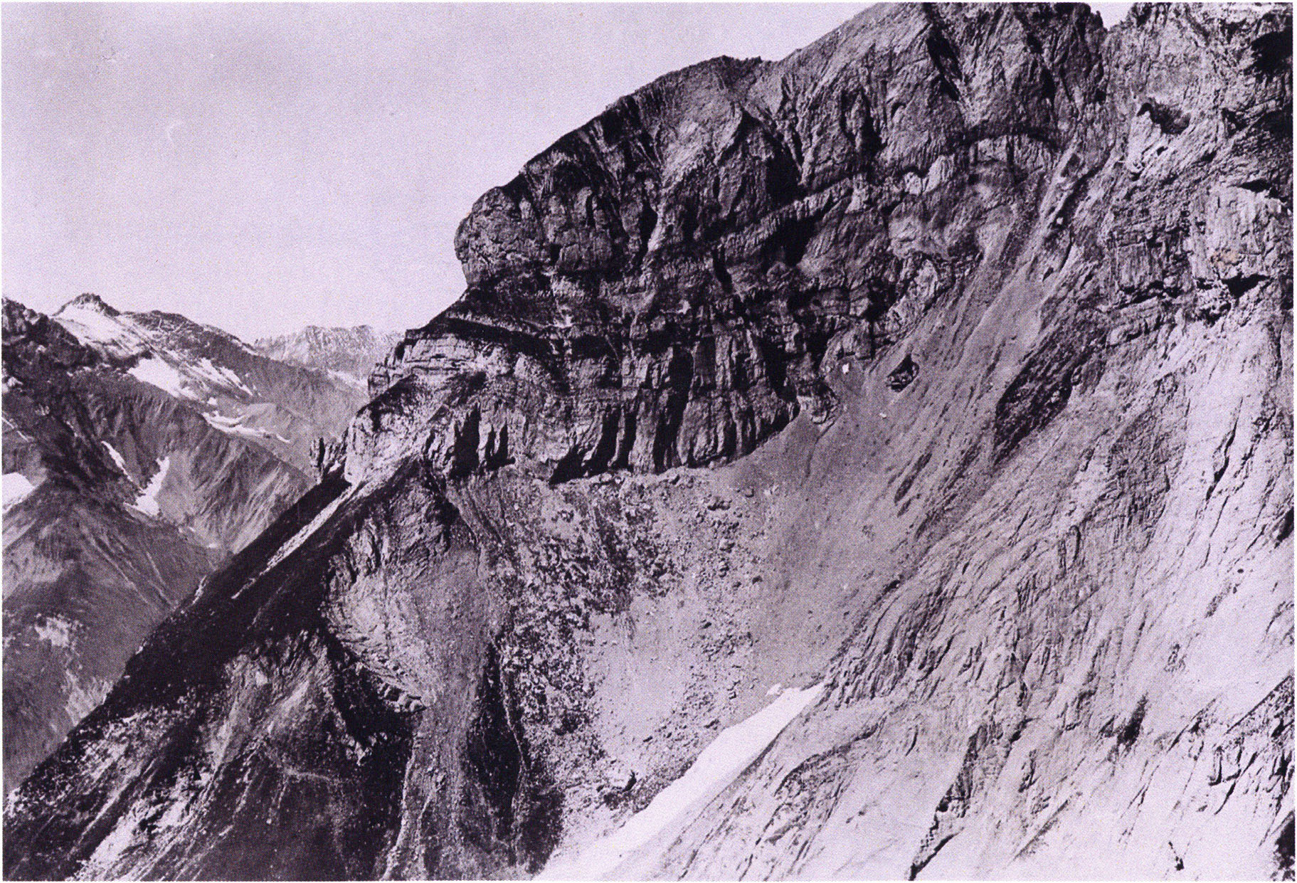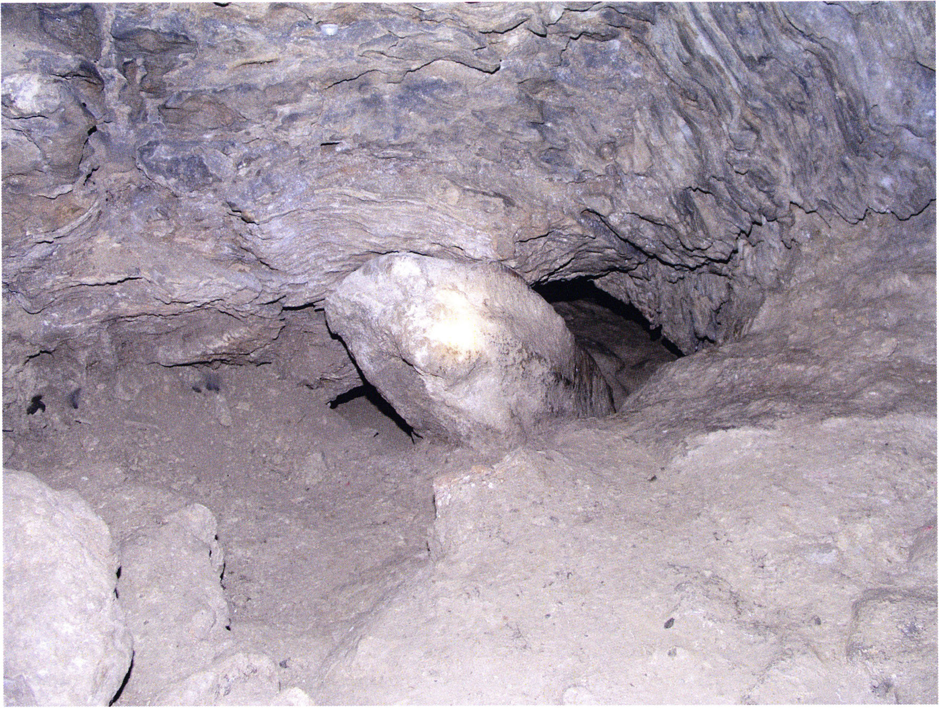Fig. 153, p. 323: View into the very rear of H III at the hole leading to cave sections IV–VI. Above it the cave wall that Bächler describes in 1921, p. 53, as "enormously bent, undulating, split into narrow layer-plates — so that this crumpling and bending created caves III and IV (–VI)"!