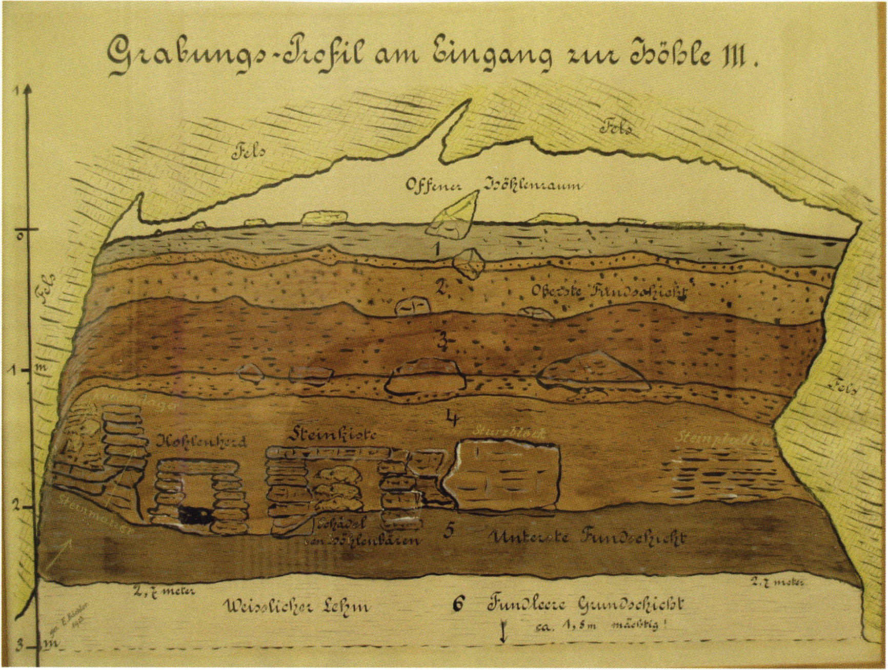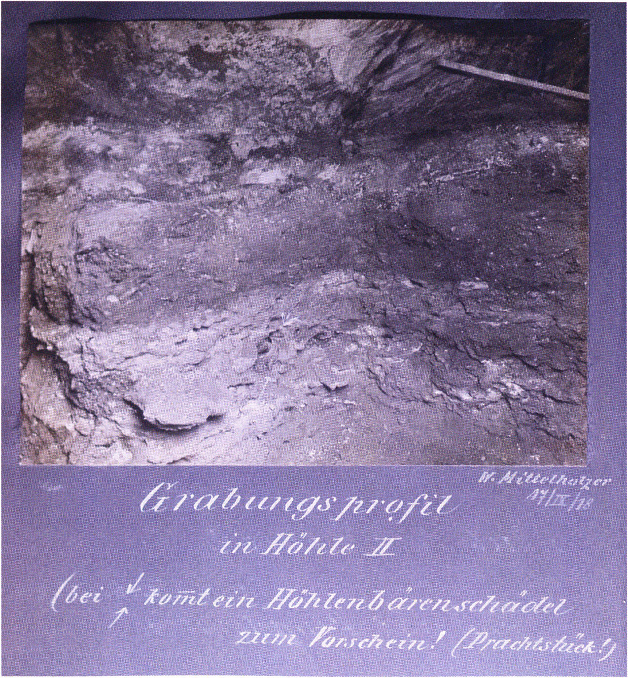 Entdeckung der vorgeschichtl. Tierfunde (Bärenreste) im Höhlenbodenschutte.