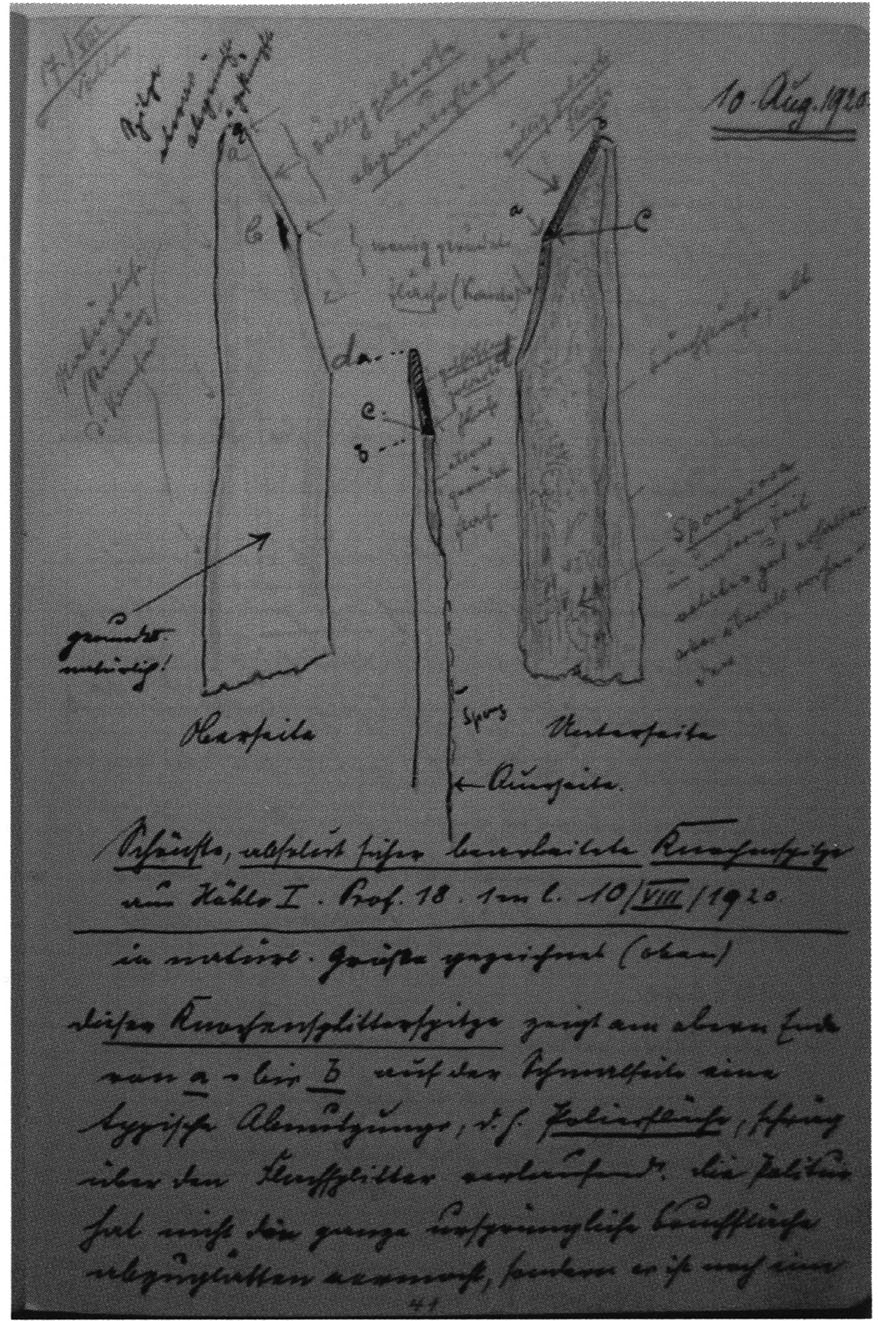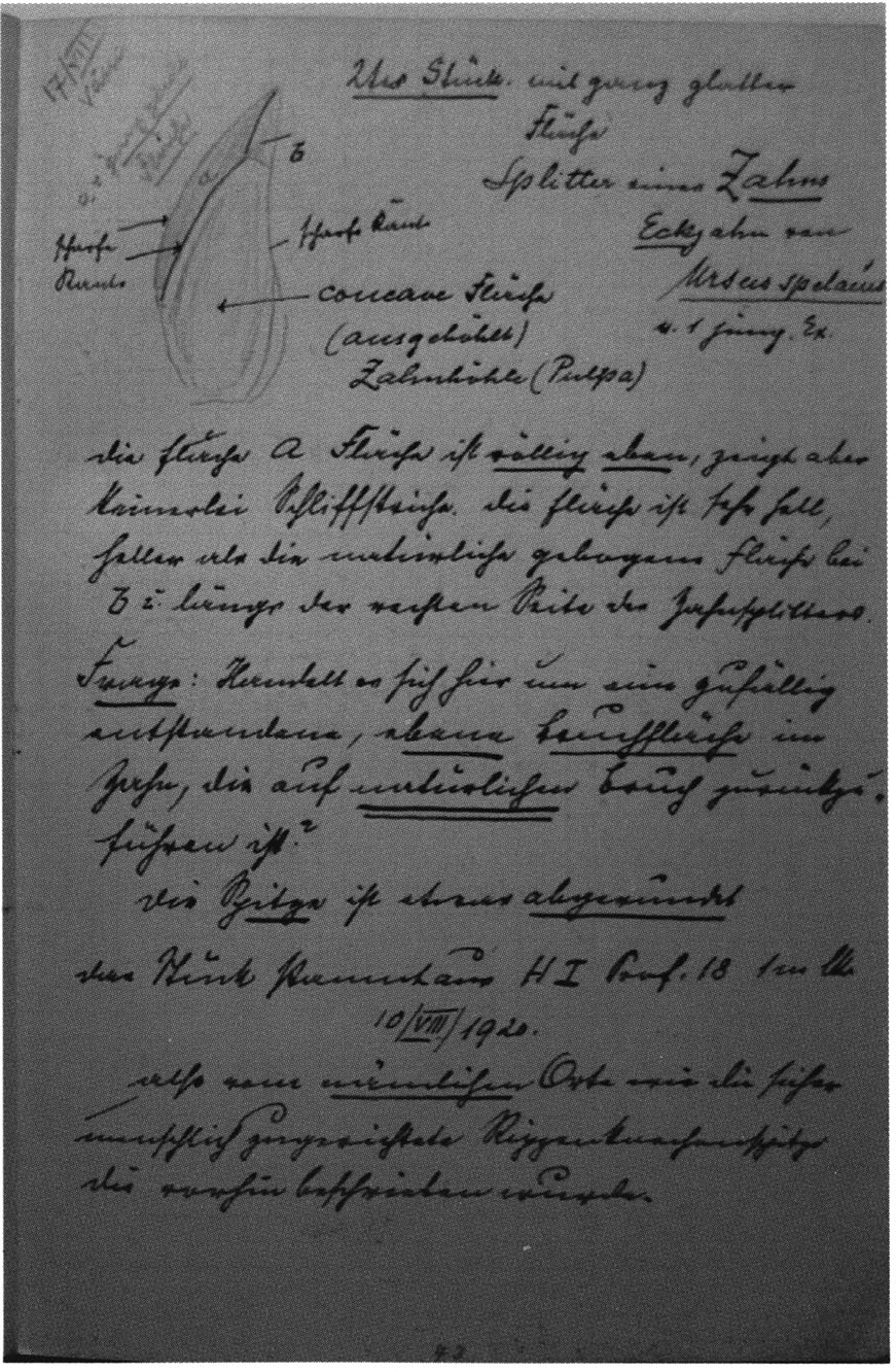 Fig. 139, p. 291: The upper half of p. 120 of Bächler's manuscript for his Drachenloch publication in the Yearbook of the St. Gallen Natural History Society 1920/21 (see bibliography).