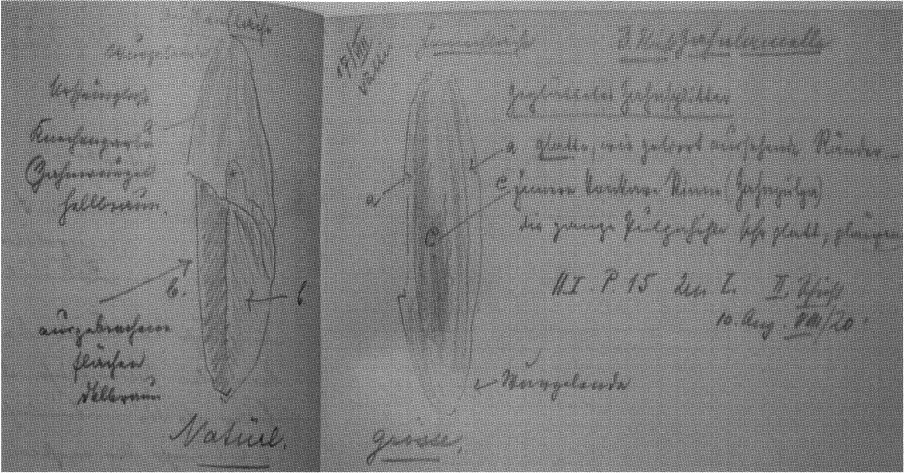— D 1–D 45, handwritten descriptions of the 45 numbered cave bear skulls and skull halves from the Drachenloch, 33 pages, private archive "Emil Bächler," St. Gallen City Archive (Vadiana), box 8. (No year.)
