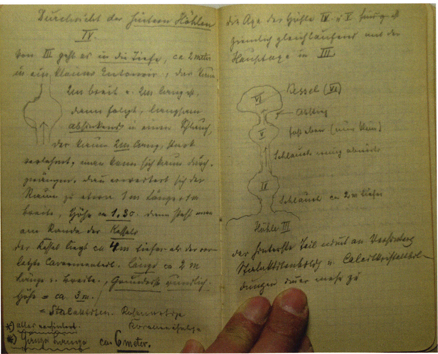 Nigg, Theophil: Höhlentagebücher 1–8 [Cave diaries 1–8], Skizzenhefte I–IV [sketchbooks I–IV]; State Archive Graubünden, Chur: STAGR, D V/6 1–8 + S I–IV.