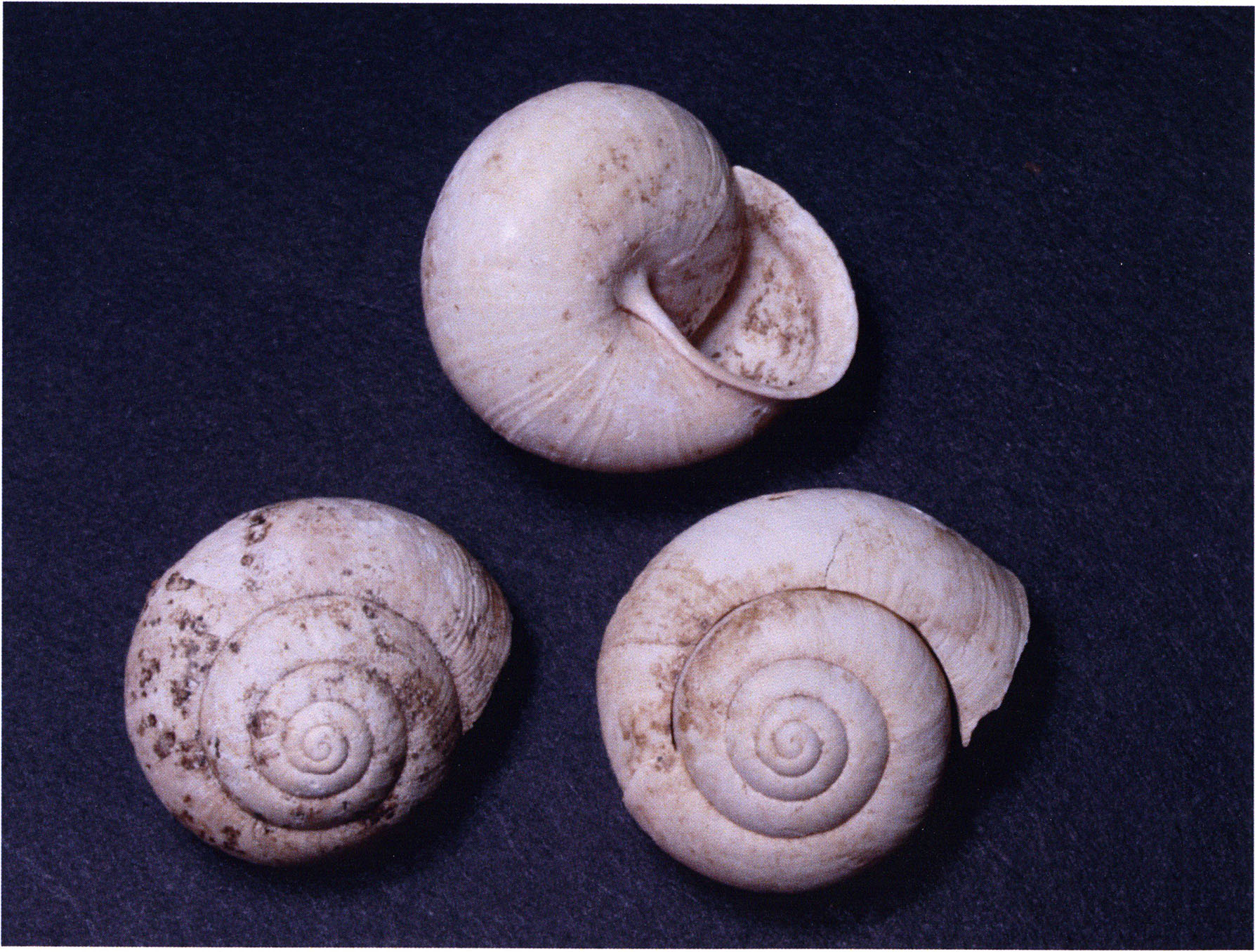 Fig. 171, p. 369: 2 snail shells with diameters of 16 and 18 mm — the larger photographed on both sides — from the Drachenloch, of the species"Helicigona vel Arianta arbustorum alpicola": the snail species that appeared in masses during the excavations in the Drachenloch.